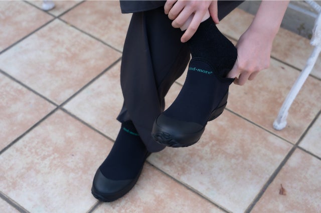 薄くて軽いのに圧倒的な超防水を実現したのは、ダイビングスーツに用いる素材をシューズに応用したためです。