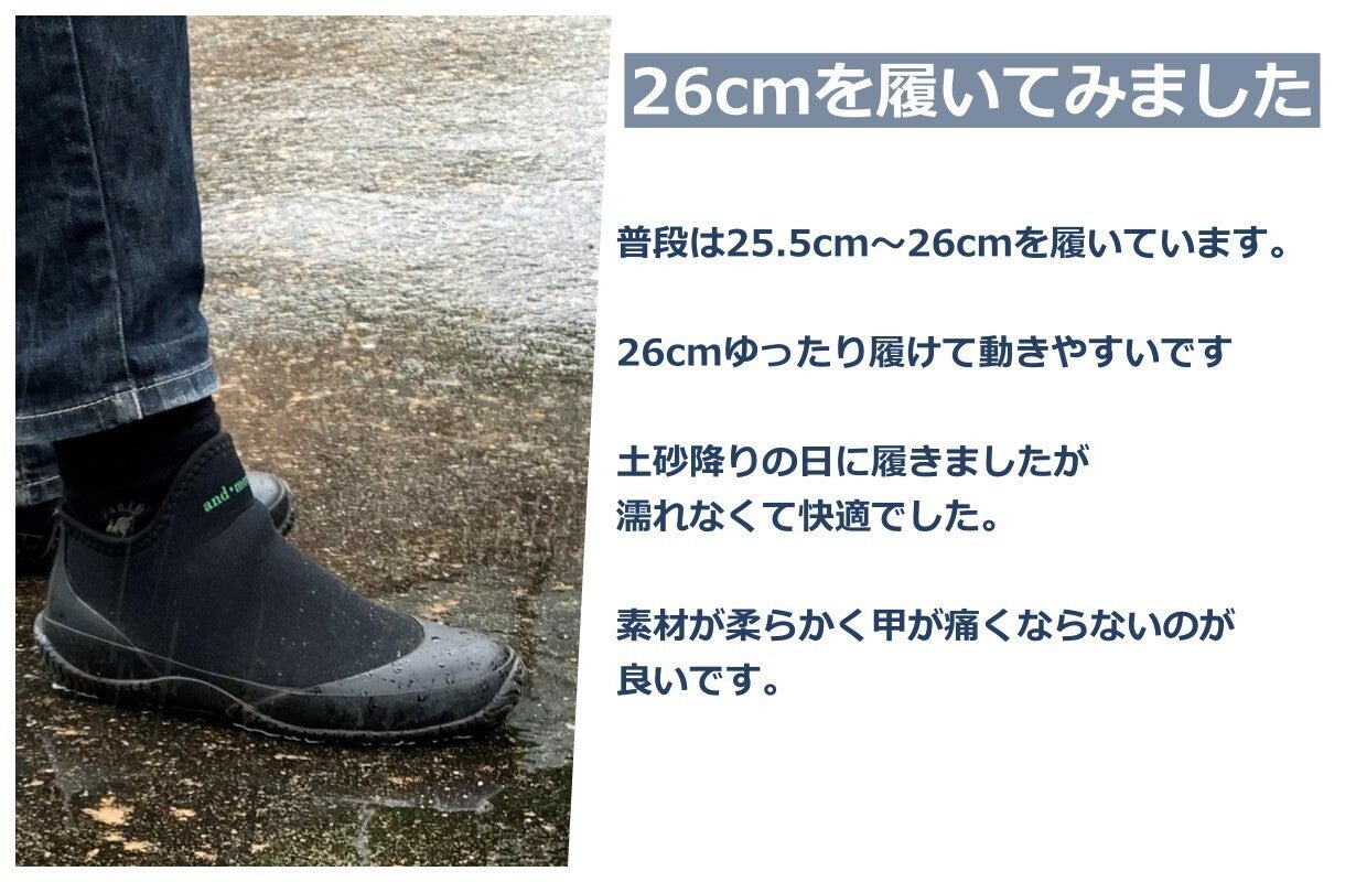 水に強い靴で、泥汚れも簡単に洗えて、サッと脱ぎ履きできる靴があれば草刈りもしやすいと思いました。