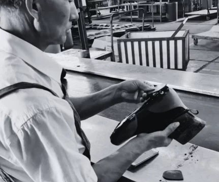 大量生産、機械生産が当たり前となっている現代に、今なお熟練の職人さんたちによる手作業が工程の大半を占めているのが、バルカナイズ製法です