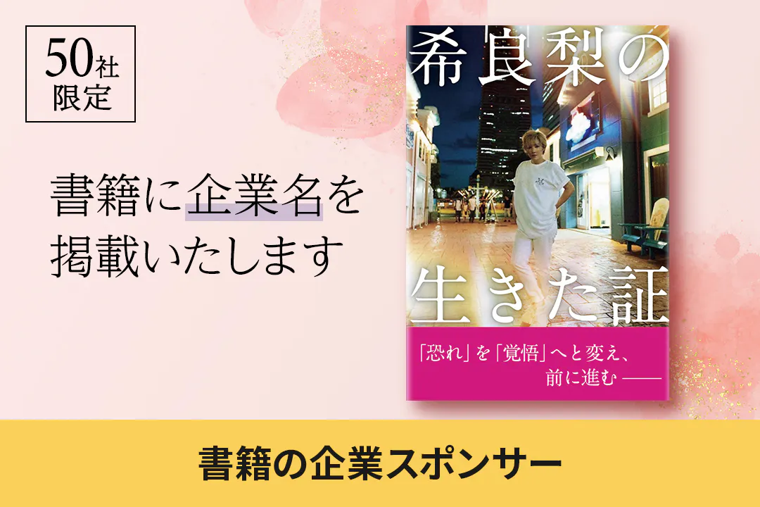 書籍「希良梨の生きた証(仮)」の企業スポンサーになれる権利です。 書籍にあなたの企業名を掲載させていただきます。 希良梨の書籍であなたの会社をPRできます。 希良梨の生きた証にぜひお名前を掲載してください。