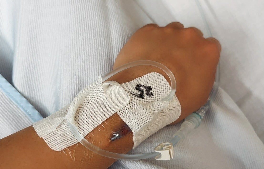 朝のうちに吐き気止めの錠剤を服用し、さらに点滴も強めに調整してもらいました。医師からは「初日はそれほど強い症状は出ないかもしれない」と説明を受けていましたが、点滴が始まるとすぐに、強い眠気と体の重さが襲ってきました。さらに、体が熱を持ち、思わず冷房をつけるほどの倦怠感。針を刺した部分がじんわりと熱を帯び、ときおり鋭い痛みが走ることもありました。