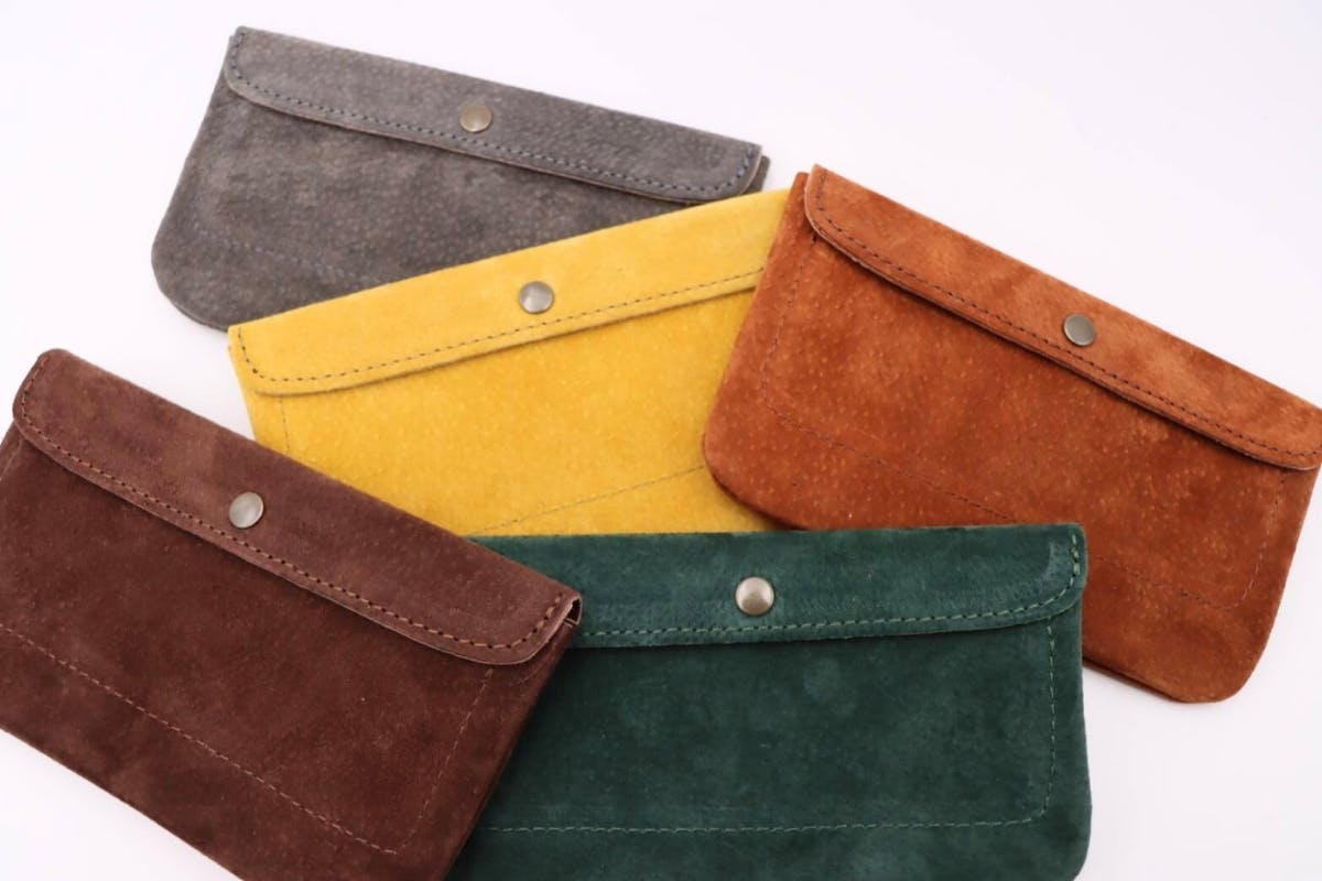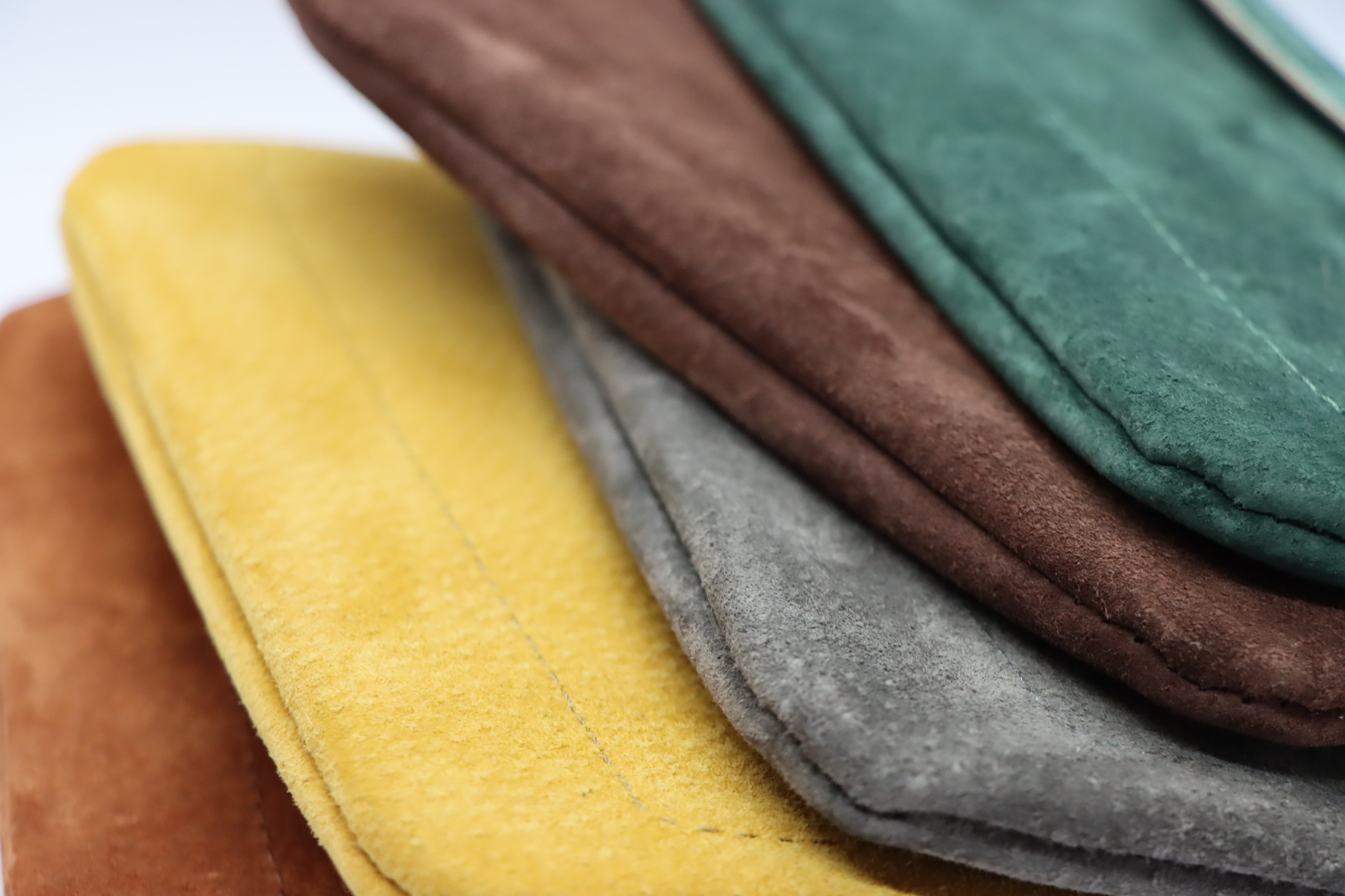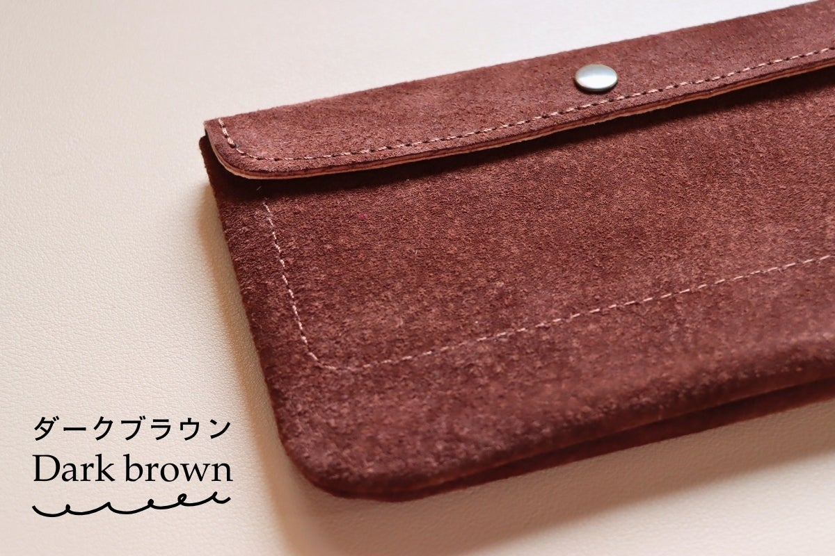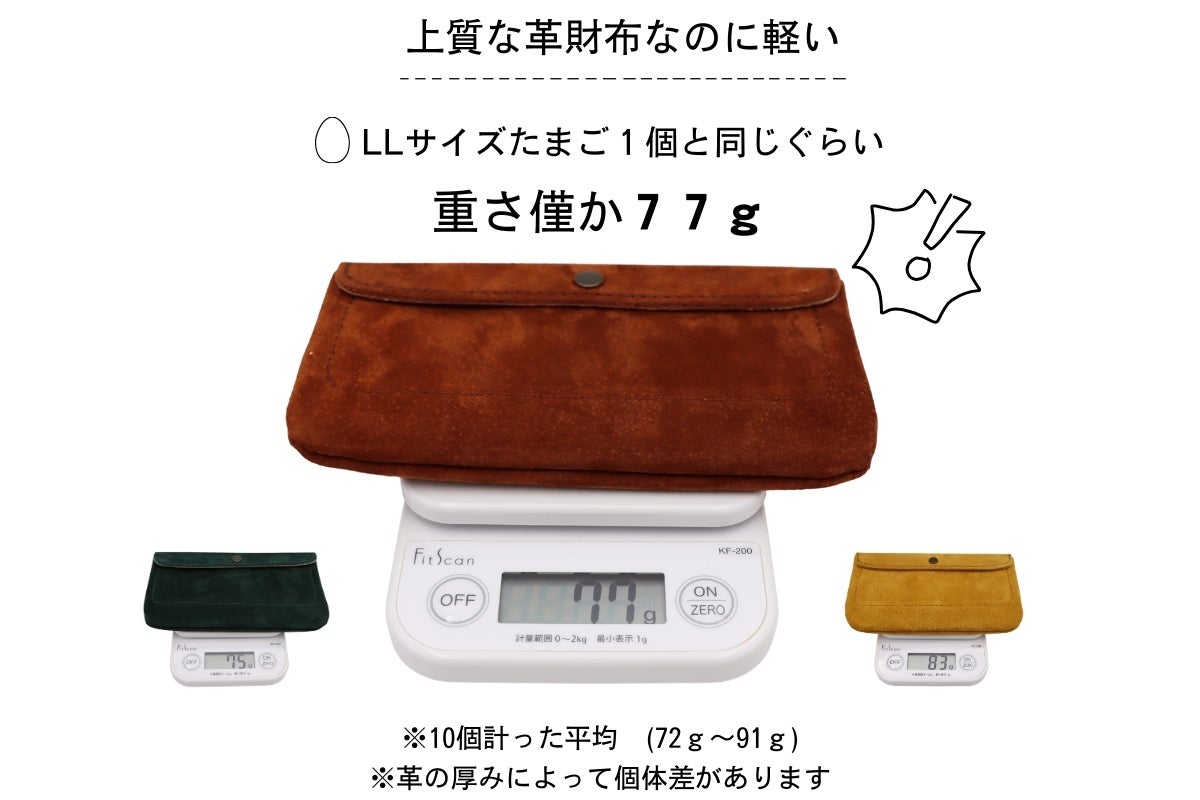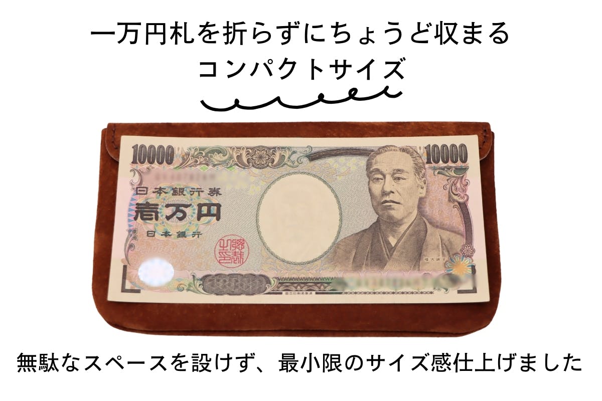 その特性は、軽さと強さの両立。薄くしても強度を保てるため、無駄な厚みを省きながら、耐久性を確保できます。スエード仕上げによる上品なマットな質感は、シンプルなデザインと相性抜群。「本当にちょうどいい財布」を目指し、選び抜いた素材です。