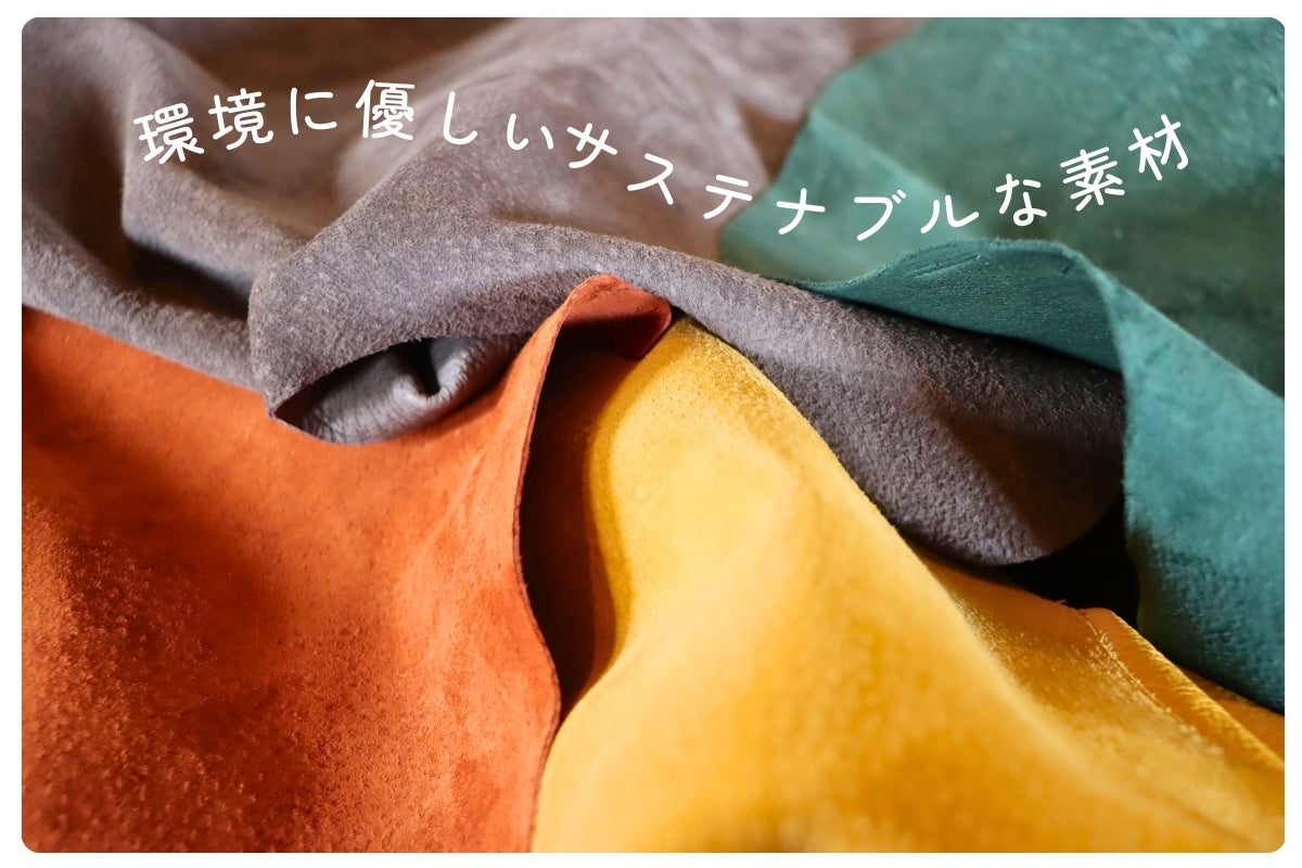 一般的に流通する革の多くは海外原産ですが、豚革は日本国内で唯一消費される国産革です。食肉加工の副産物として生まれ、日本国内でなめされ、加工される、環境に優しいサステナブルな素材。