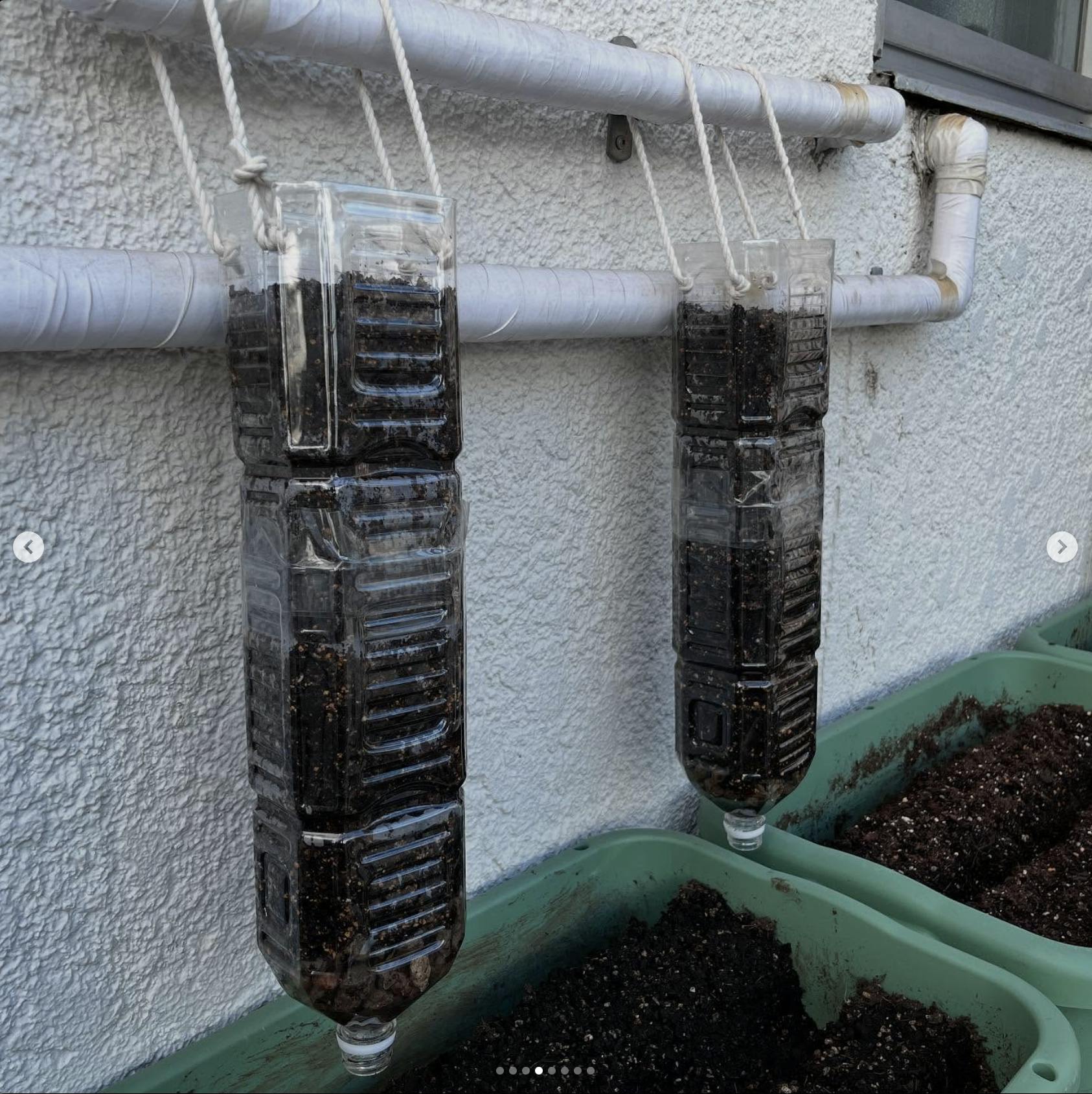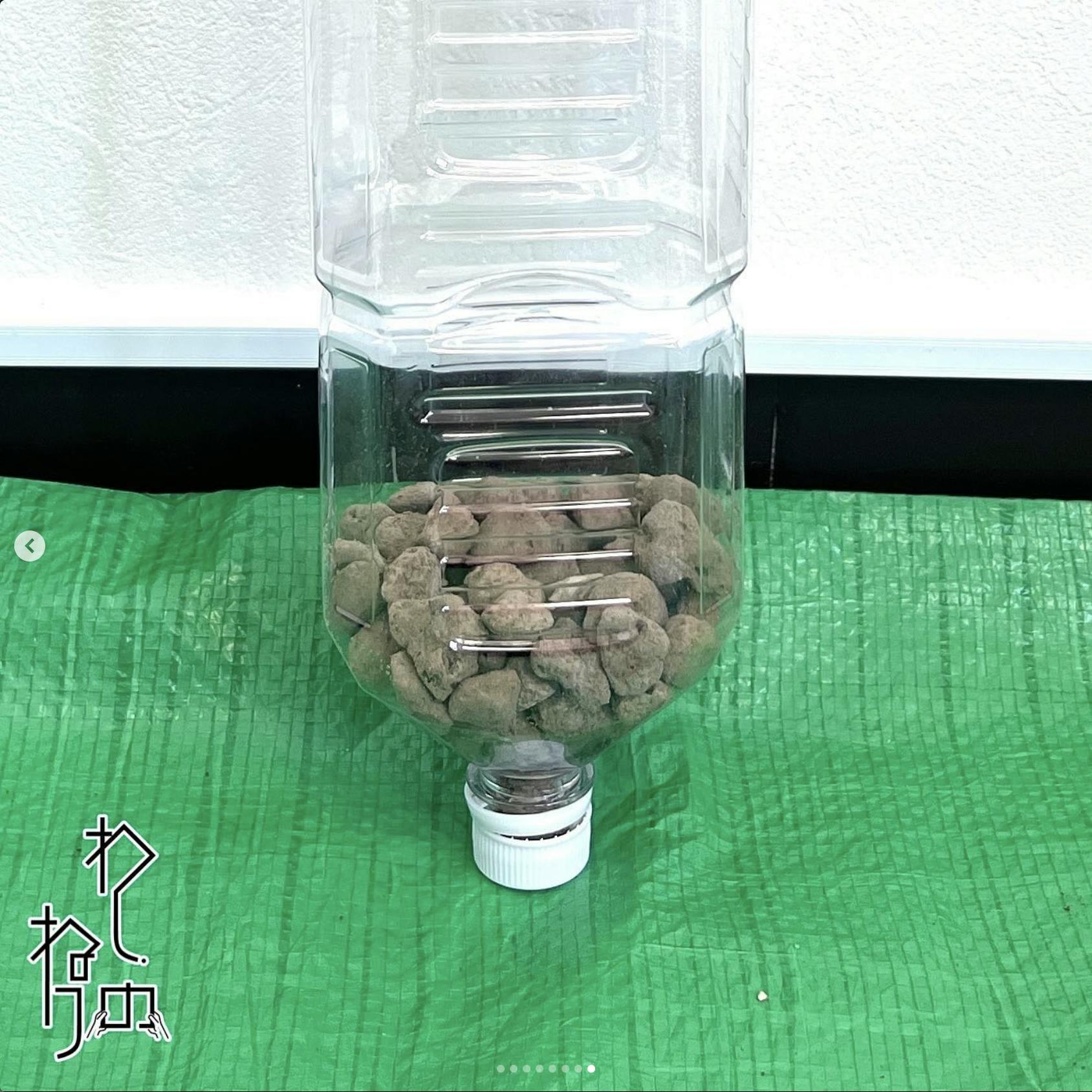 ペットボトルプランターは、2Lのボトルを2本使用。