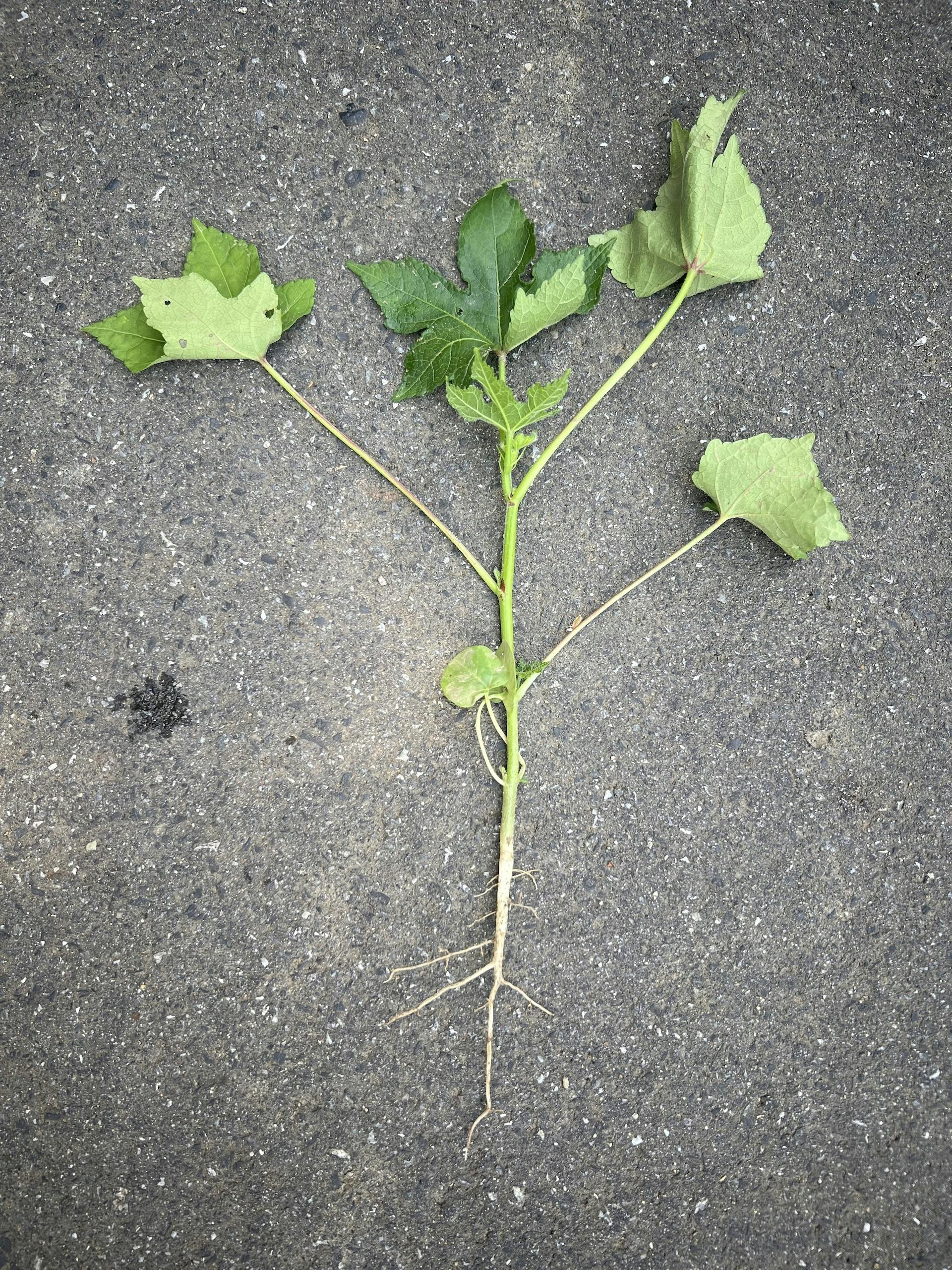 雨が少ないことで、どこも背丈が小さいようです。わしのねりの畑で、間引きしたトロロアオイですが、茎や葉は小さめですが、根はまっすぐ伸びて根が膨らみはじめていました。