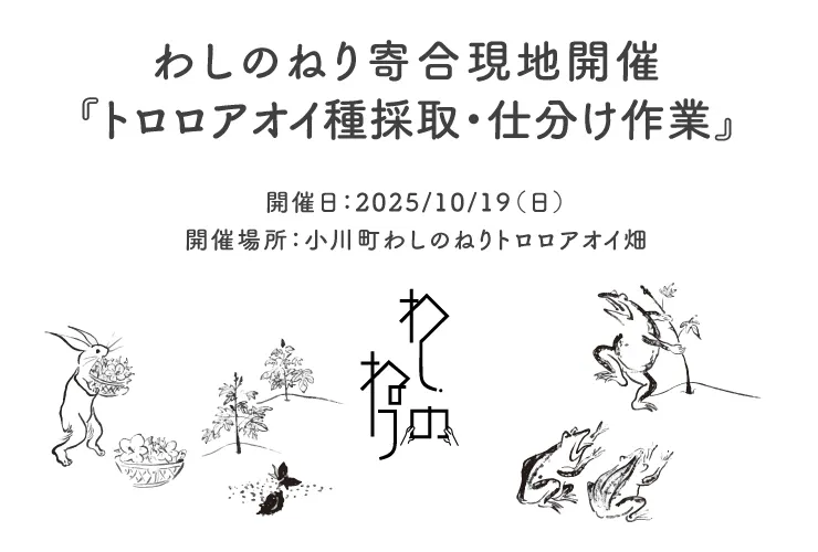 今回、この暑さや気候でもしっかり根を付けたトロロアオイの種、連作にも強い種を選別して収穫したいと考えています。皆さんの収穫より少し早くなりますが、10月19日にわしのねりの畑の収穫をいたします。