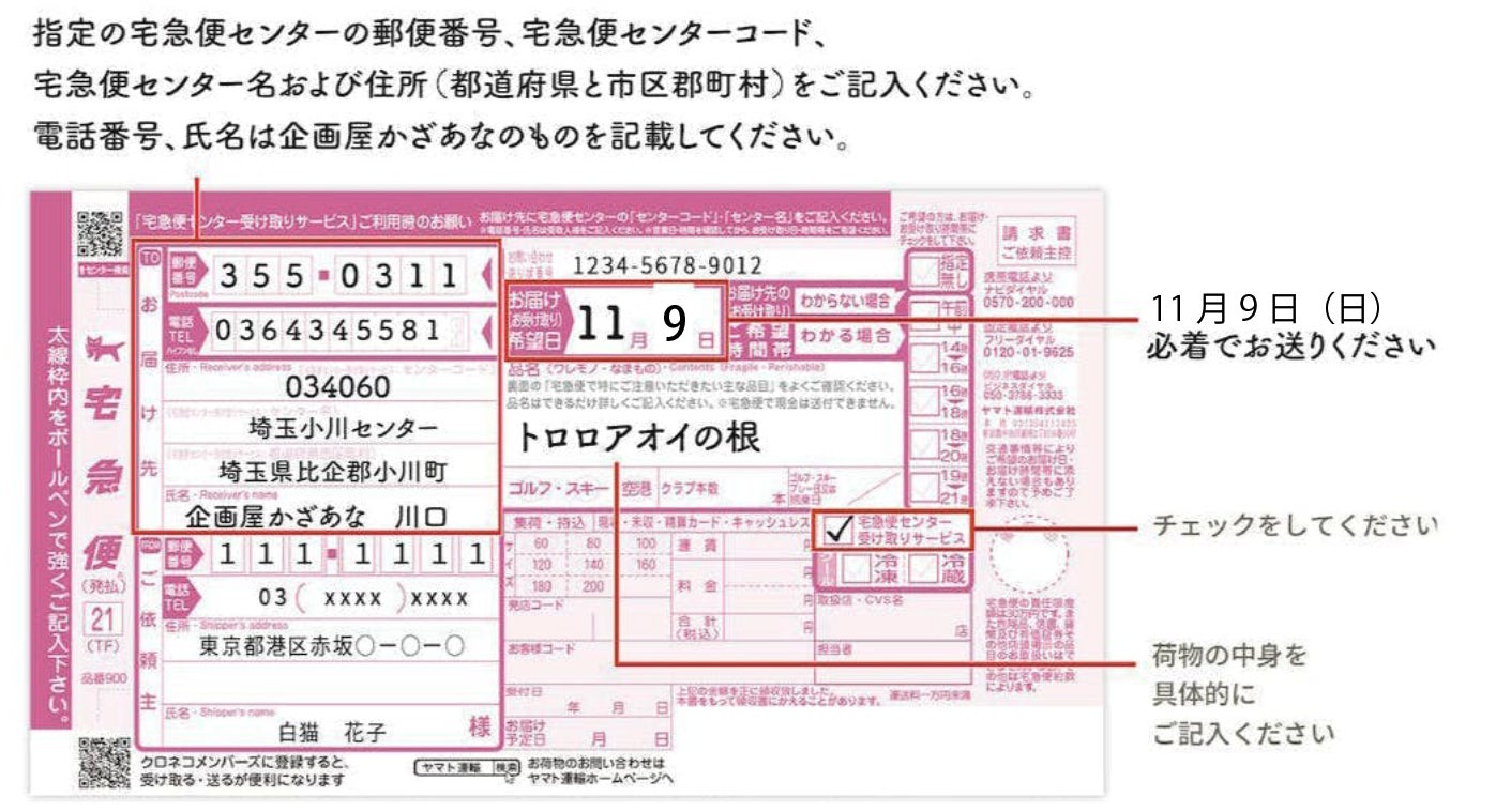 注)出荷日以外の納品は受け付けることができませんので、お気をつけください。