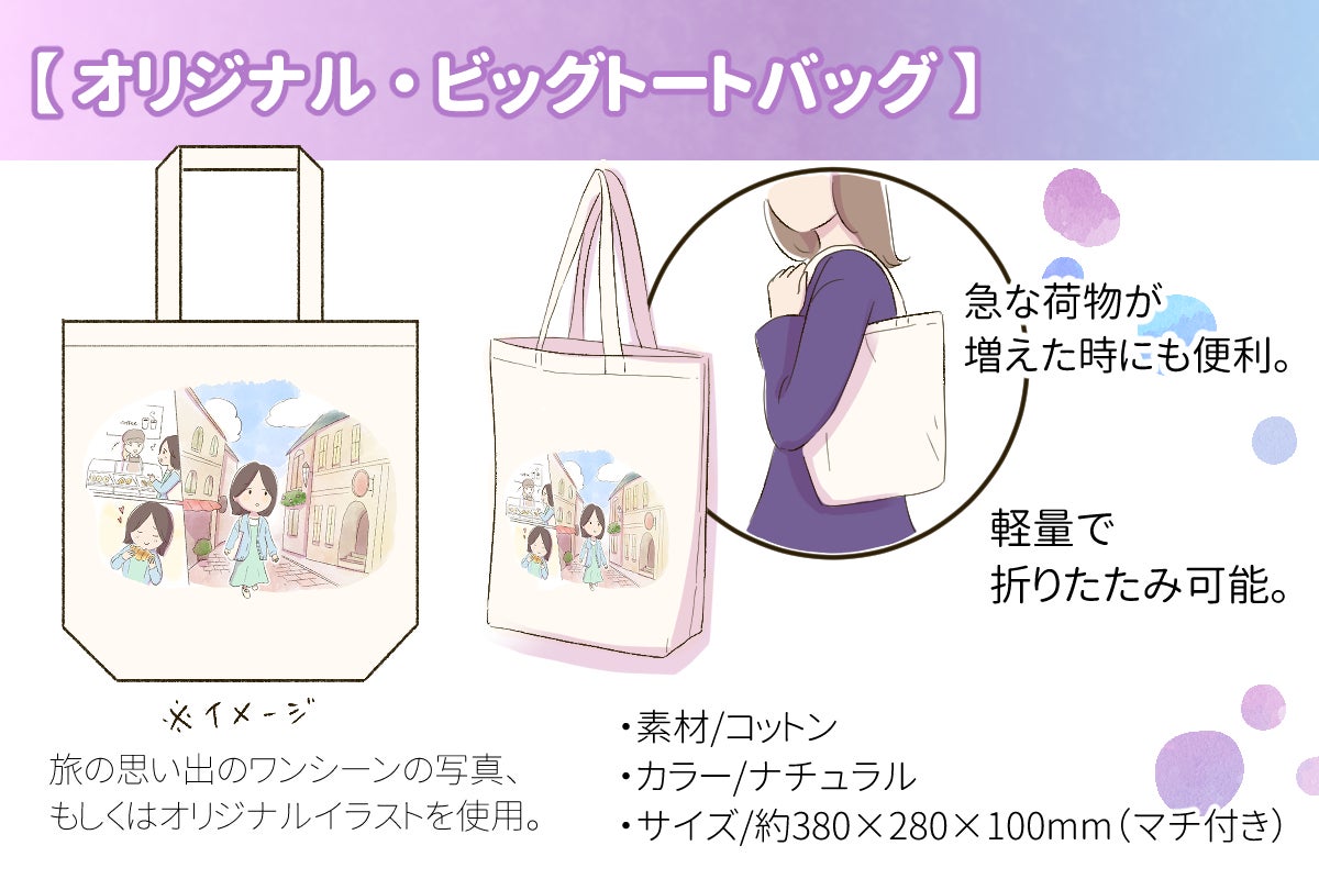 旅の思い出のワンシーンの写真、もしくはオリジナルイラストを使用。