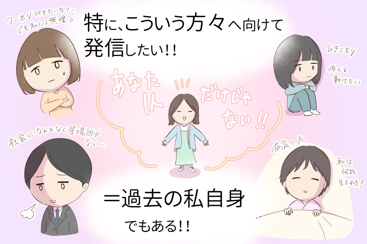 ☑️どこか社会に馴染めない方へ向けて、「こんな生き方もありなんだ」と少しでも心が軽くなるようなエッセイ漫画を届けたい。