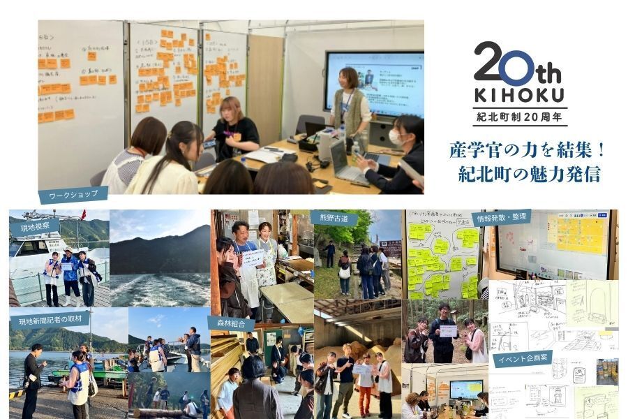 紀北町、企業だけでなく、芝浦工業大学デザインプロセス研究室の繁里ゼミの学生たちも加わった産官学連携として、学生たちの新鮮な視点と創造力を活かし、来場者の皆様により深く紀北町の魅力を体感していただける空間づくりに取り組んでいます。