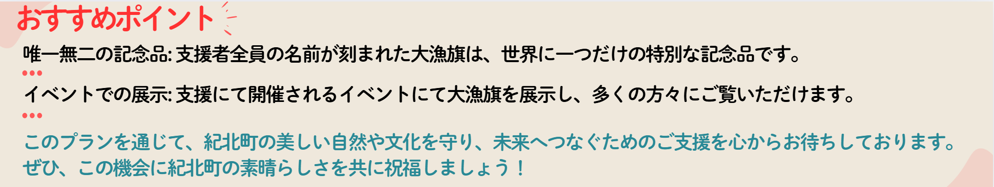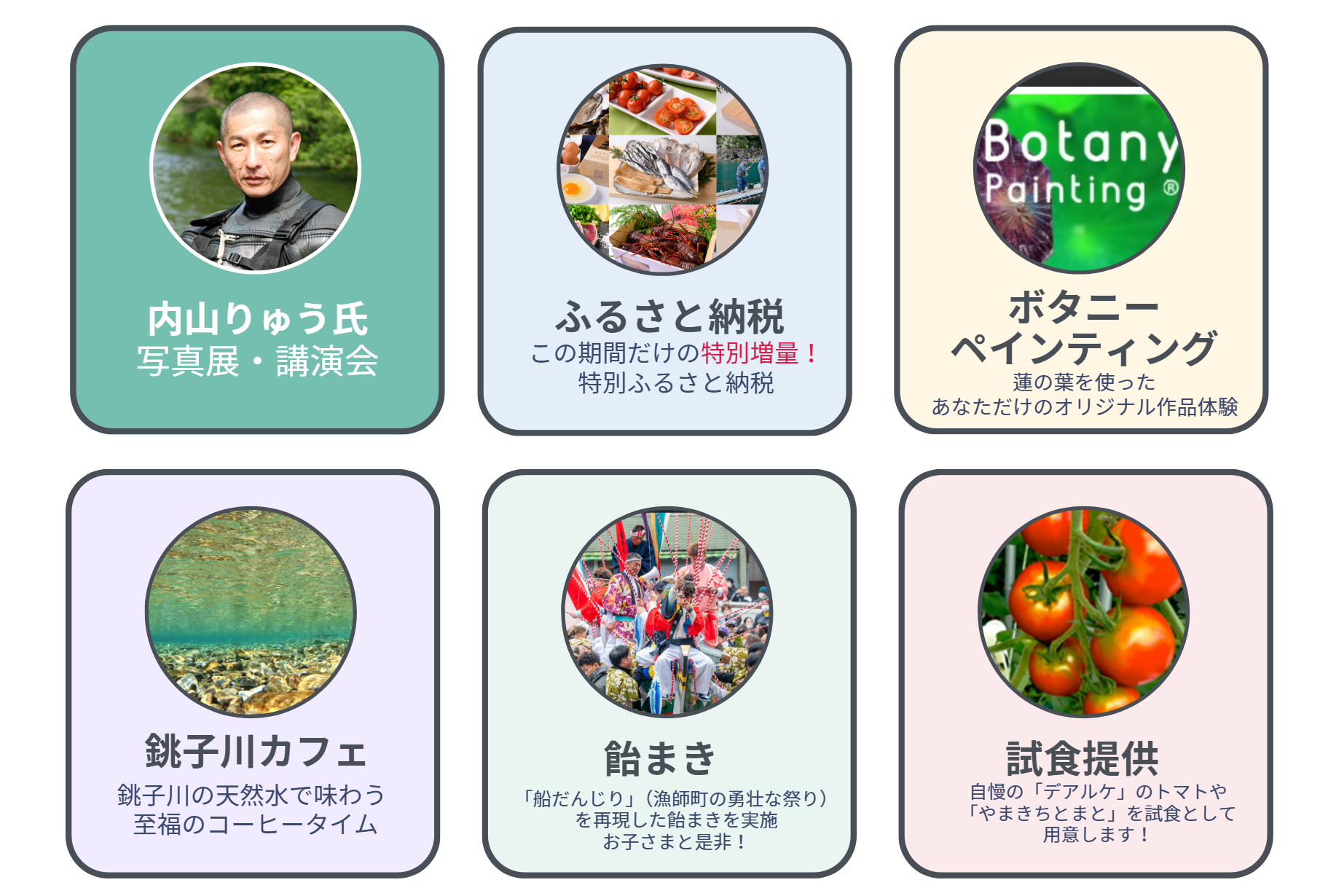 お子様から大人まで楽しめる体験型のコンテンツもご用意しておりますので、ぜひこの機会に紀北町の魅力に触れ、私たちと一緒に紀北町の未来を支えていただけませんか?皆様のご支援が、美しい銚子川を守り、紀北町の持続可能な発展につながります。