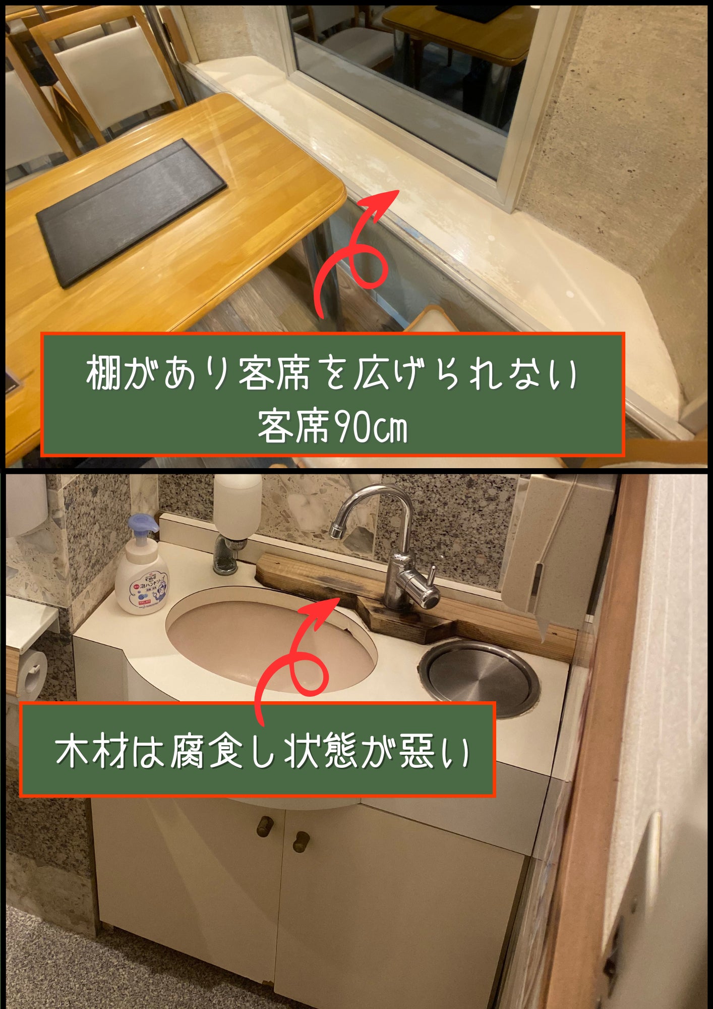 - 客席面積が狭く、ゆったり座れない