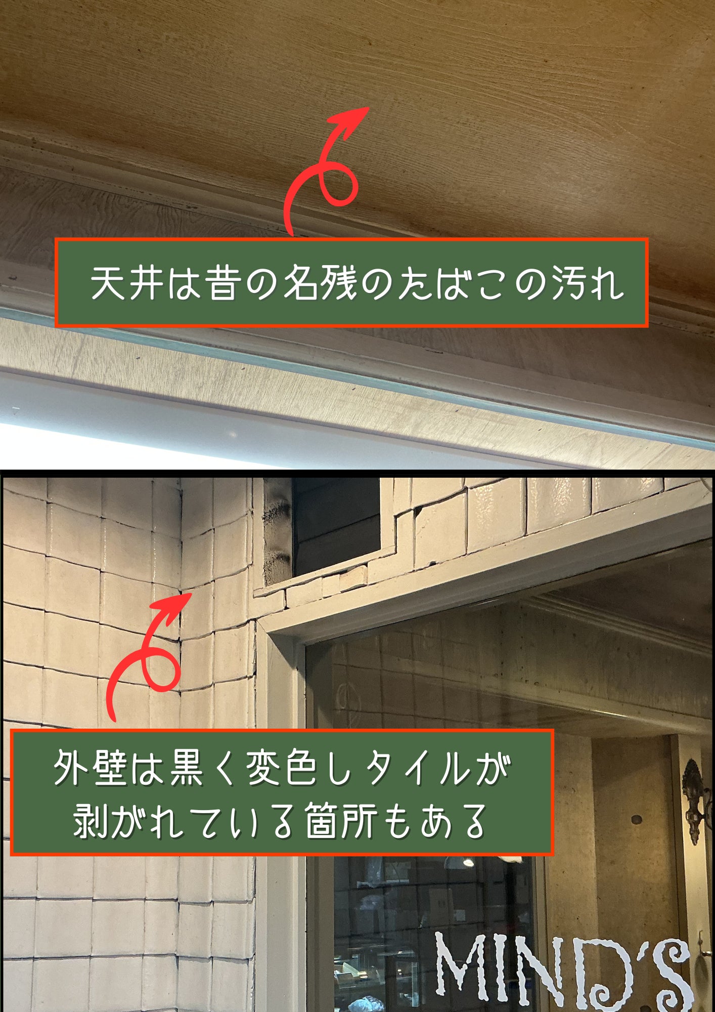 - 長年の喫煙によるタバコのヤニ汚れが、