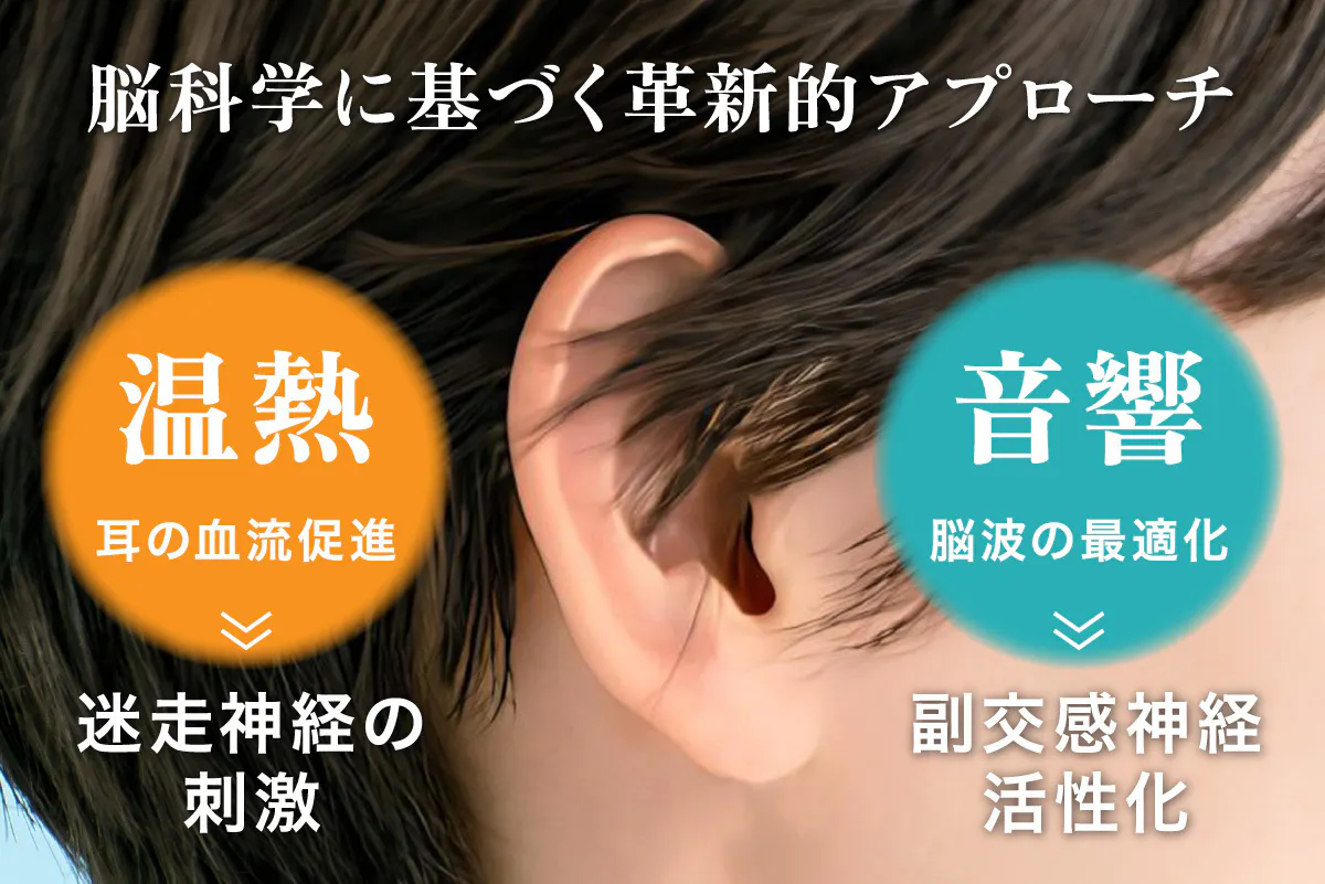 「耳部温熱」×「音響テクノロジー」によって、自律神経を整え、本来の心地よいリズムを取り戻すことを目指しています。