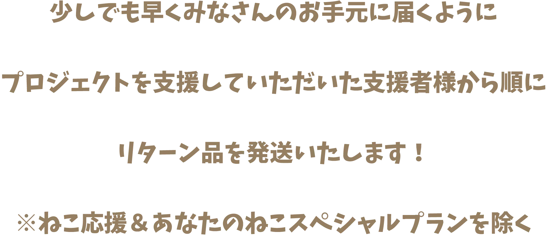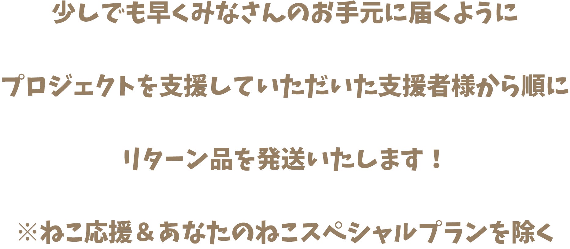 2025/06/27 20:00いつも『にゃん生すごろく』をあたたかく応援してくださり、本当にありがとうございます。このたび、クラウドファンディングでご支援いただいたリターンの発送がすべて完了いたしました!ひとつひとつ、感謝の気持ちを込めてお届けしましたので、ぜひ楽しんでいただけたら嬉しいです。また、SNSでの感想や写真の投稿もありがとうございます。「遊んでみたよ!」という声や、にゃんこたちとのほっこりした時間の様子に、チーム一同たくさん元気をもらっています。(よろしければ、これからも #にゃん生すごろく でシェアしていただけると、とっても嬉しいです)そして、追加リターンにつきましては、現在心を込めて準備を進めております。お届けまで少しお時間をいただきますが、楽しみにお待ちいただけたら幸いです。これからも『にゃん生すごろく』と、ひなたぼっこズをどうぞよろしくお願いいたします。みなさまのもとに、ほっこり楽しいひとときが訪れますように もっと見る