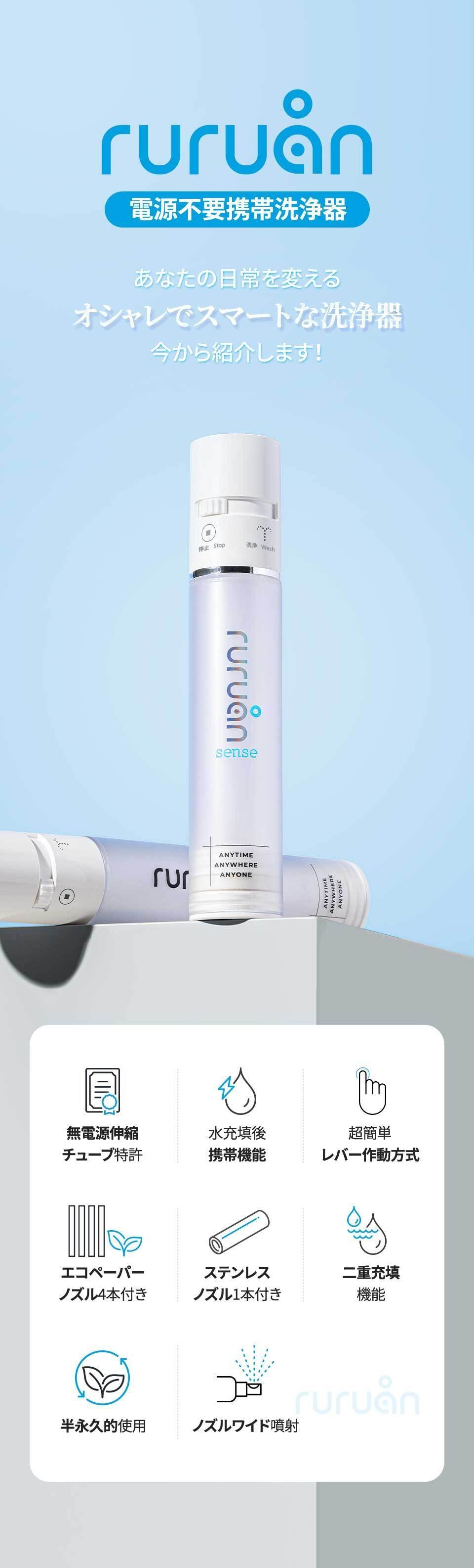 電源不要!充電不要!軽量でどこでも持ち運べる「ルルアン携帯洗浄器」