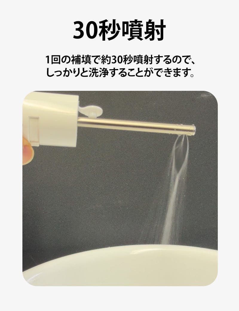 電源なしでもしっかりと洗浄できる水圧で安心できます。