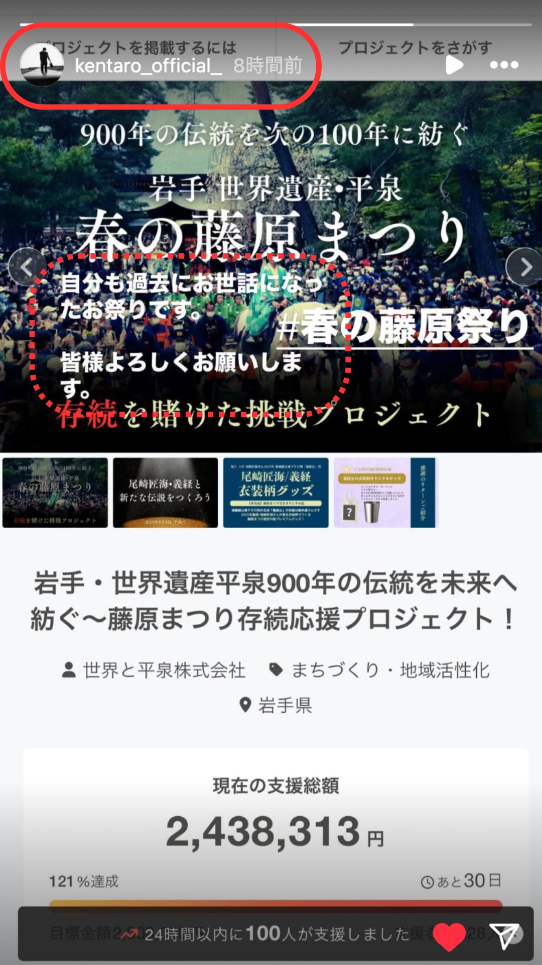 ご本人がこうしてストーリーズで呼びかけてくれたことを言葉で表現するのは難しいですが、本当に励みになりました。