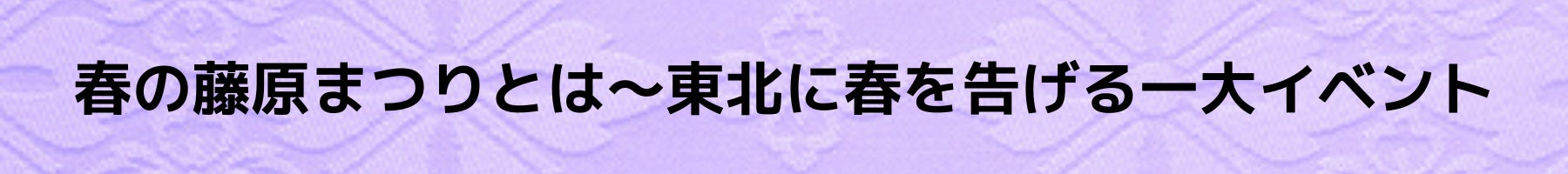 東北は冬が長く厳しいだけに、春待つ喜びには格別な感慨があります。春の藤原まつりは、平泉の伝統と文化を継承する目的があると共に、東北人が待ち焦がれた春を告げる風物詩でもあるのだと思います。