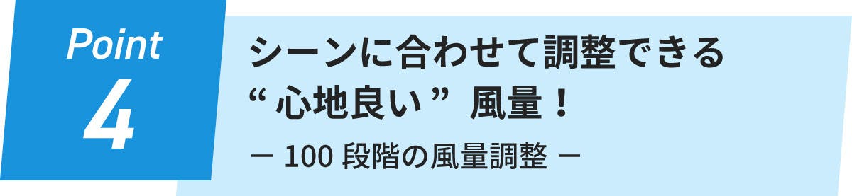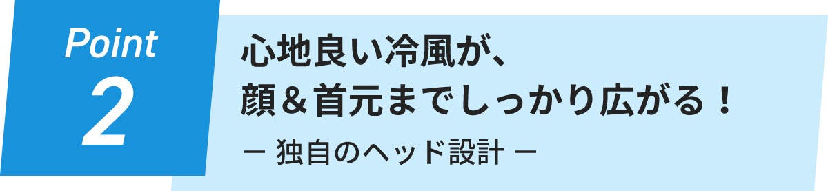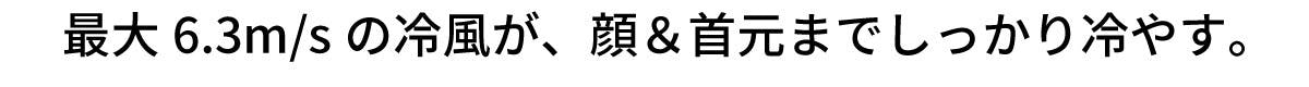 最大風速は6.3m/sのパワーを活かしながら、風速と風量のバランスを調整し、顔から首元まで包み込むように広がる風を目指しました。
