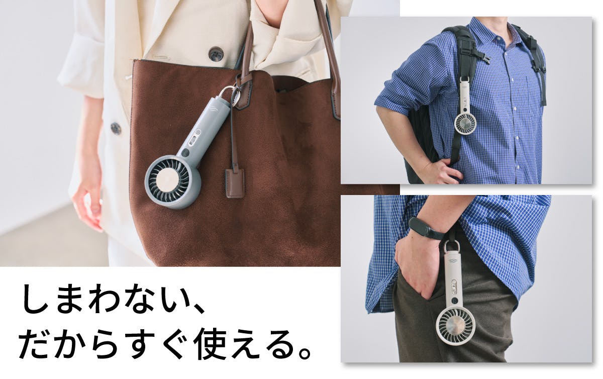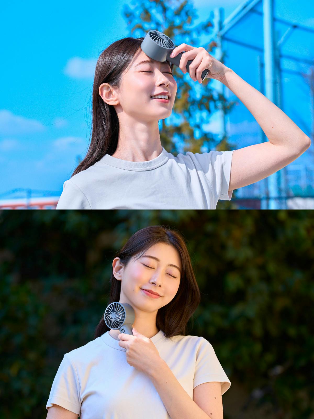 携帯するのではなく、“身につける感覚”で使えるハンディファンです。