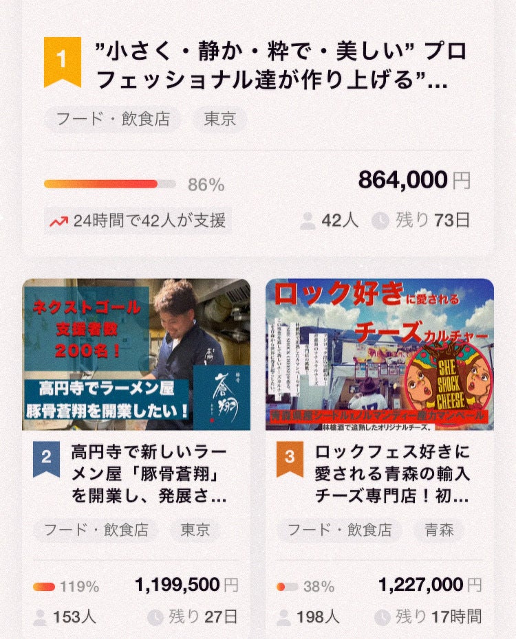 そしてこちらのCAMPFIREを通して前回クラウドファンディングで資金集めをさせて頂きました。その結果として大変有り難いことにフード部門トレンドランキング3位で着地する事が出来、総支援額134万円の資金調達を達成させて頂きました!