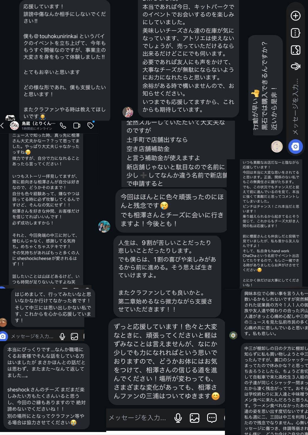 2025/09/18 08:58みなさまご報告が遅くなってしまい申し訳ございません!第一候補で予定した新弘前店の建造計画が外的要因により白紙になってしまい(理由は後述)、当初の新店舗計画の目処が断たれてしまいました。ですが現在ほかの候補案を何個か出して新弘前店の設立へ向けて着実に動いております!弘前店を奪還するために!本来の2025年内に設立する計画、は予定よりお時間がかかってしまう可能性があることを先にご報告させてください。ですが必ず実現させます!想定していたよりもお時間がたくさんかかってしまい大変申し訳ございません、、ことの経緯としては昨年2024年末にさかのぼります。土手町に新商業施設を建造予定で、そちらにテナントとして入りませんか、という某企業様からのお誘いでした。暫定ではありましたが事業のきちんとした計画書もご提出頂き、設立へ向けた信憑性も確かでしたのでぜひ参加させてくださいと二つ返事でお話しさせて頂きました。その後実際にその計画を実行に移すにあたり、様々なトラブルが私ども以外の他のテナント予定の店舗さまとあったようでなかなかうまくことが運ばず、数ヶ月結論を待っていたのですが先日8/1に計画は白紙になったことを告げらました。その後他の代替案を検討して動いてはいるのですがなかなかうまく運ばず。今に至ります。この件に関しましてひとことで表すのであれば"完全に自分の落ち度"です。自分の弱さです。契約書も結んでいない、第一候補でしかないのにも関わらずどこか他力本願になっていた自分がいました。商業施設を作るような大きな計画には様々なトラブルはつきもの。そこに関して見ないふりをしていた自分の責任です。ですが土手町に新店舗をつくり街を盛り上げたい、僕の気持ちは一つも変わりません!当初考えていた形とは違ってしまいますが必ず成し遂げますので、ご支援頂いた皆様には大変申し訳ございませんが今しばらくお待ち頂けますと幸いです。正直僕自身、やりきれない気持ちでいっぱいなのですが今まで有言実行してきたかつての自分を信じて!かならず新土手町店を作ります。ほんとにすみません。もう少しお時間ください!計画は残念ながら頓挫してしまいましたが土手町に商業施設を作ると話されていた企業様の気概に感謝と尊敬の念を込めて、これからの自分の行動に繋げていければと思います!皆様どうか温かい目で見守って頂ければ幸いです。いつも応援して頂き本当にありがとうございます。ナカサンのあったあのときのような街の賑わいをまた見たくて僕はまだ途方もない夢を見ています。相澤隆司 もっと見る