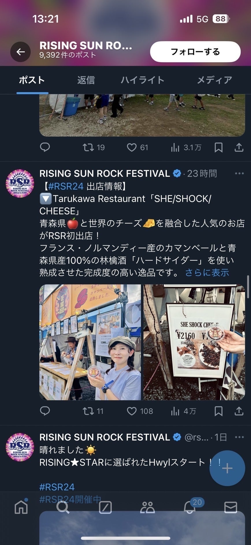 その際に運営陣の方々に気に入って頂き基本的には出演アーティストと観客の風景のみが投稿される公式SNSに、飲食店の代表として当店を投稿して頂き大きな話題になりました。その甲斐もありお持ちしたシーショックチーズは200個ほぼ完売致しました。