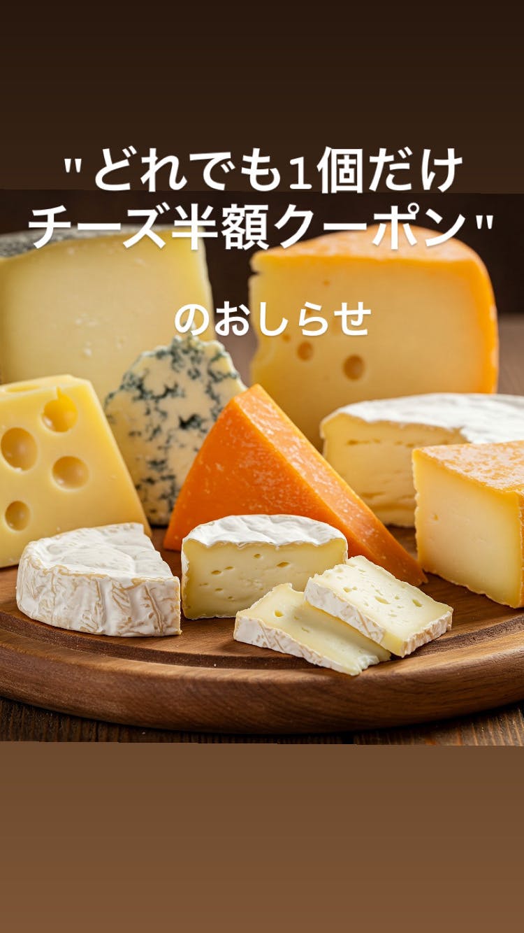 「どれでも1個だけチーズ半額クーポン(電子クーポン)」
