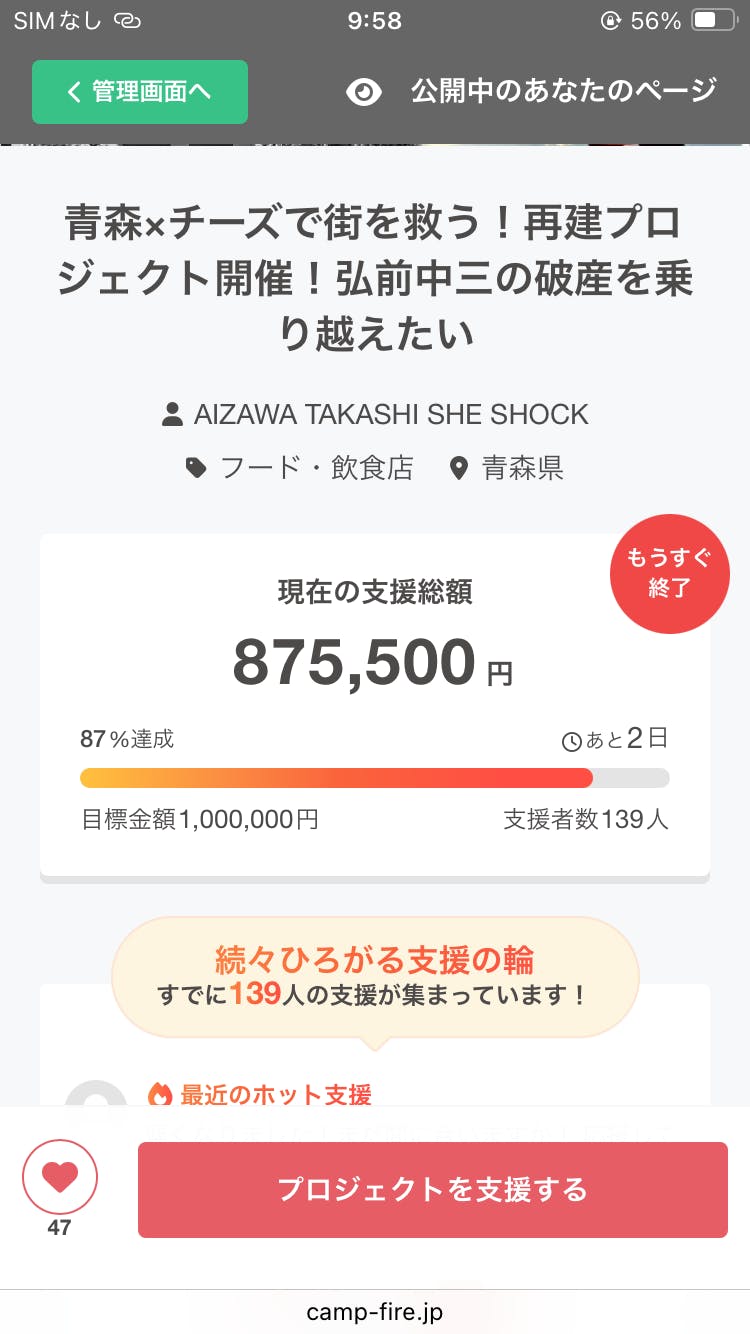 支援者数は139人。