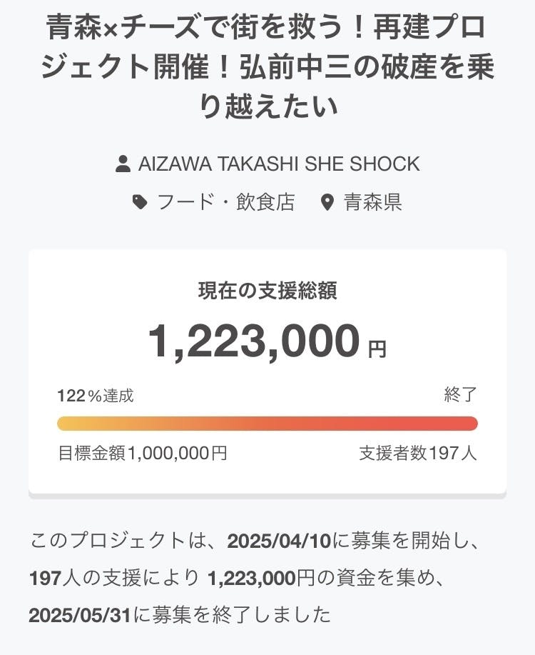 目標達成率122%という形で"大成功"のうちに終了致しました!本当に感謝しかございません。