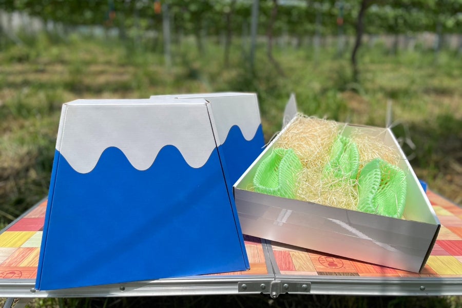 そんな思いを詰め込んだデザインであり、もちろん中のブドウが安全に手元に届くボックスに仕上げました。