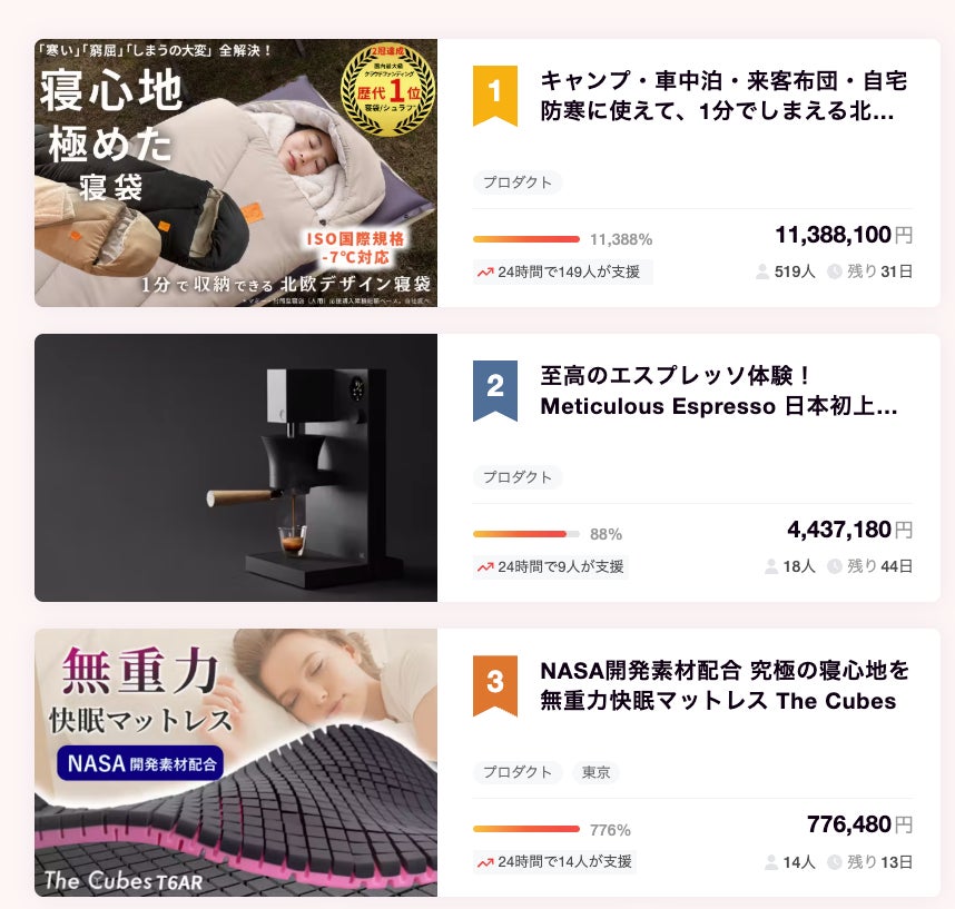 なんと非常に嬉しいことにCampfire プロダクト部門のご支援ランキングに The Cubesマットレスがランクインいたしました!!!