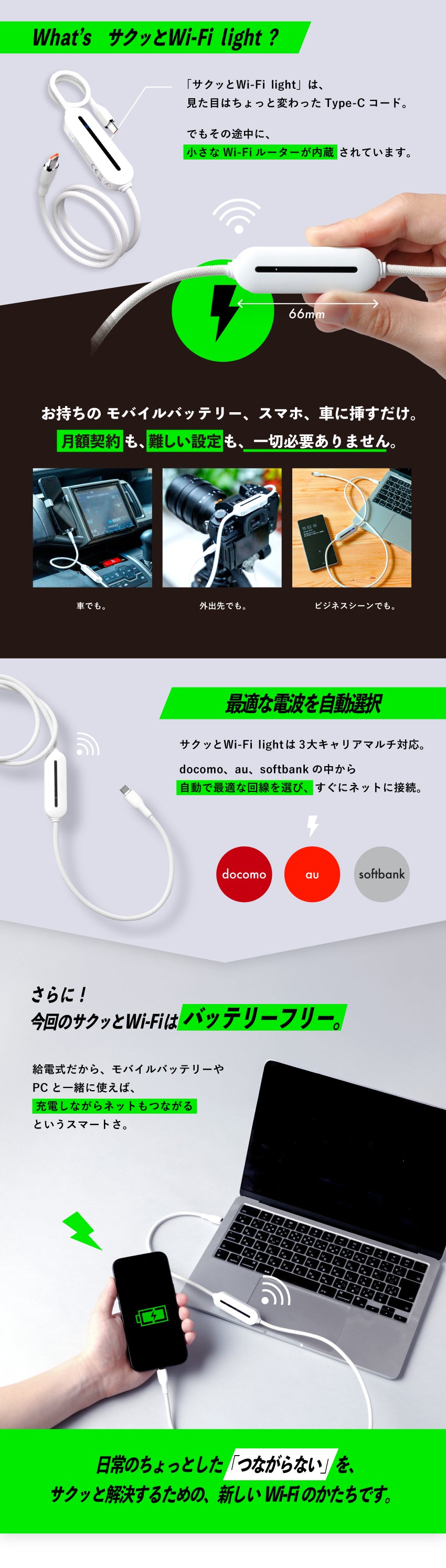 **コード型Wi-Fiルーター「サクッとWi-Fi light」**です。