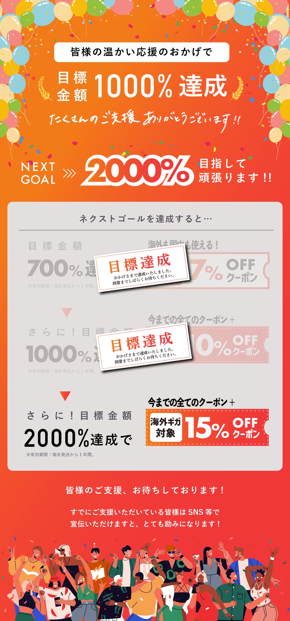 多くの皆さまにご支援いただき、目標金額の700%を達成することができました。