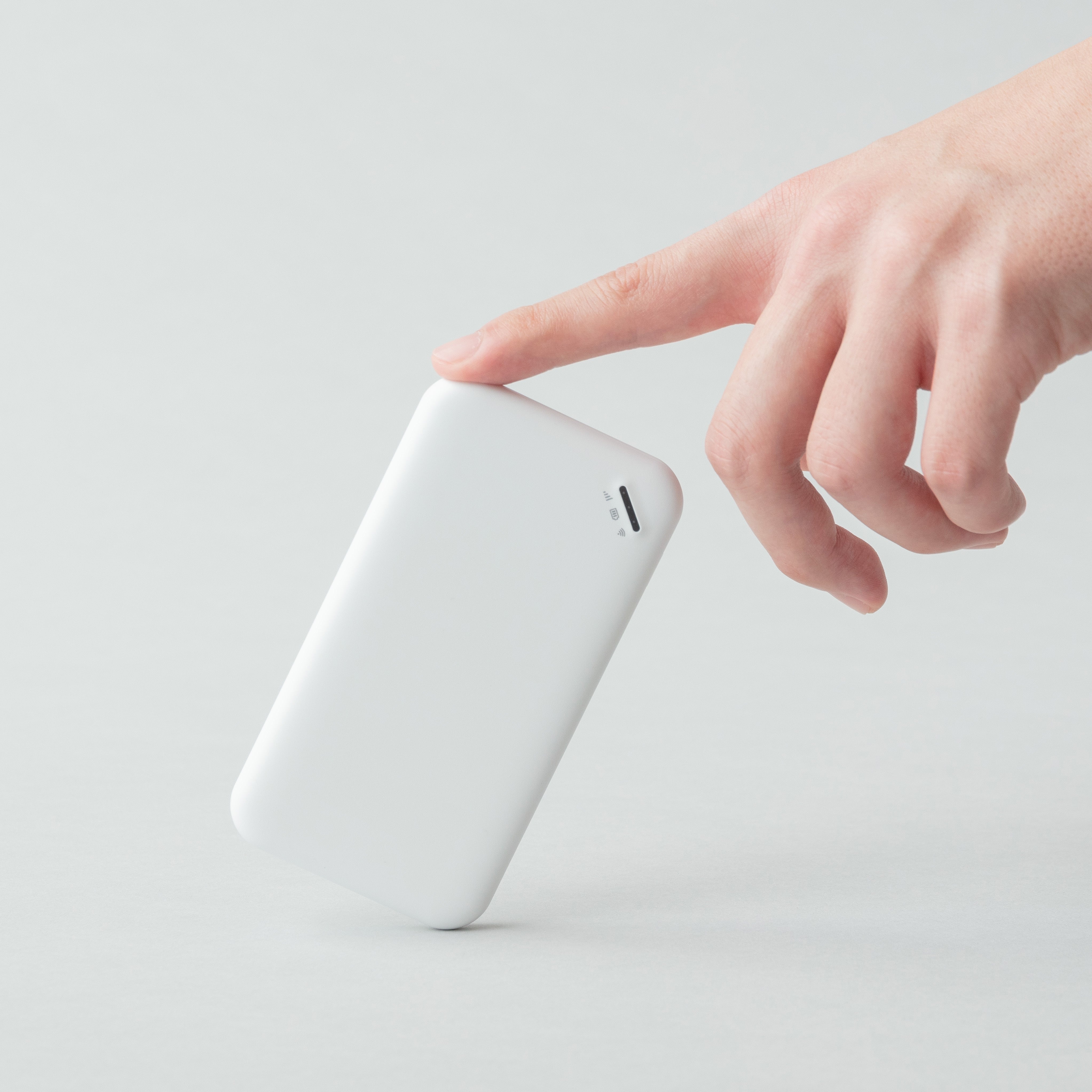 サクッとWi-Fi basic (ベーシック) はバッテリー内蔵の持ち歩き型ルーター端末で、単体で電源オン → 周囲のスマホ・PC・タブレットとWi-Fi接続して使えます。