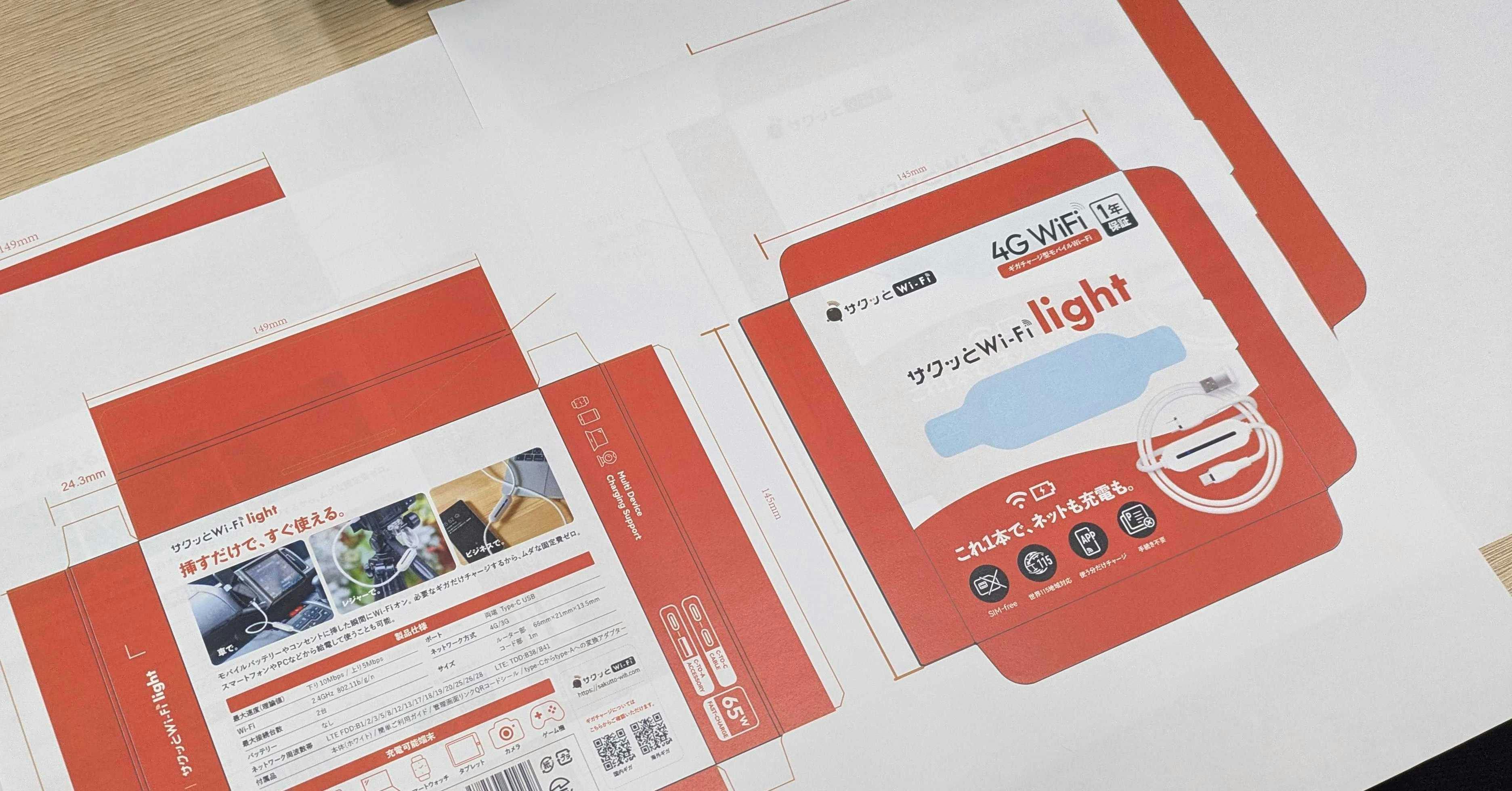 ・正面には「挿すだけ/充電不要(Type-C給電)/クラウドSIM対応」など、ひと目で伝わる要点を簡潔に。