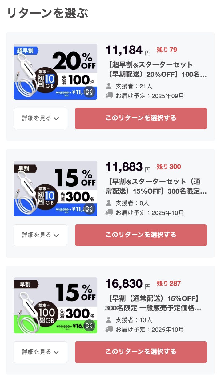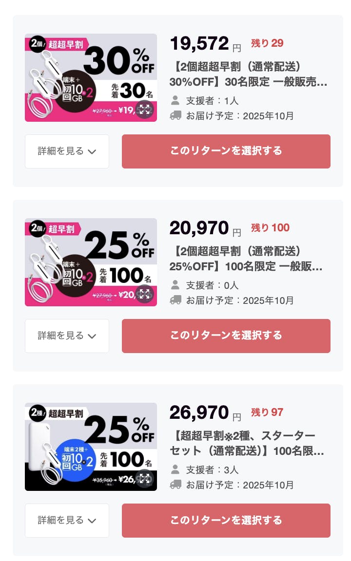 【いまお選びいただける主なリターン(在庫は変動します)】