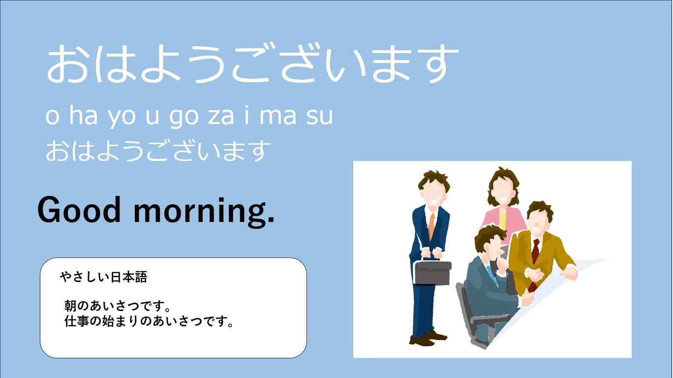 これは朝の出勤に限らず、昼でも夜でも仕事の始まりに使います。