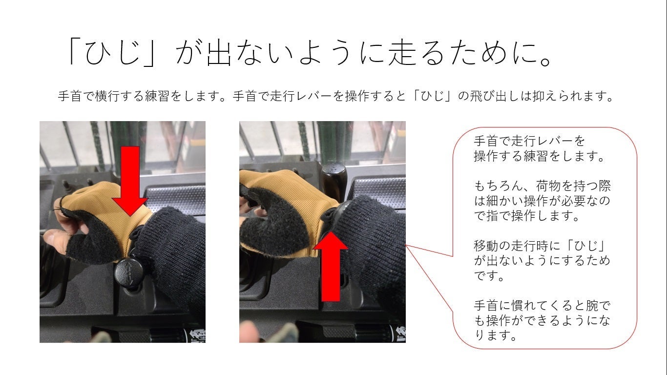 慣れないうちは、荷物を持ち上げるときだけ「指」、走行中は「手首」で、メリハリをつけて操作しましょう。