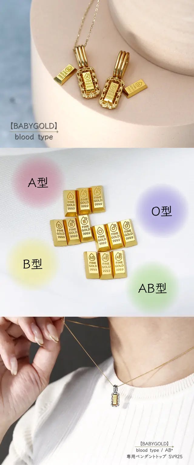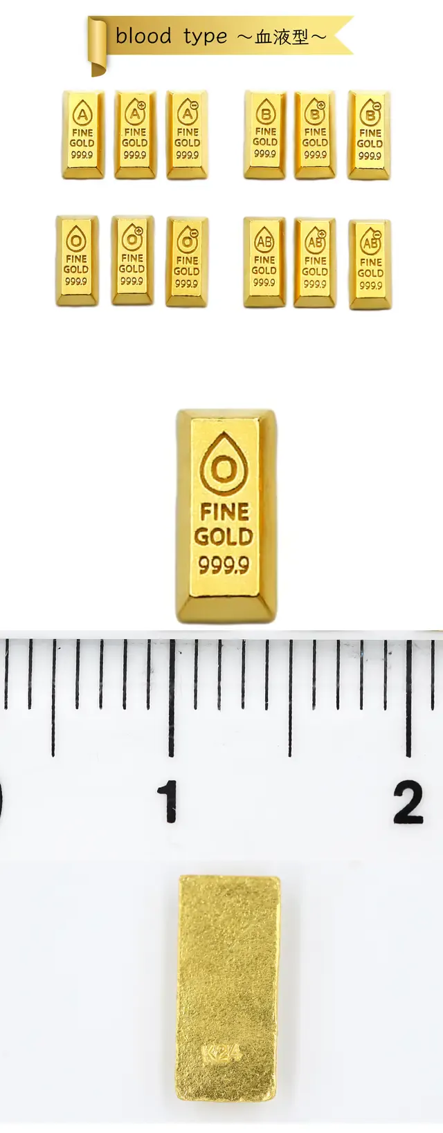 1gのかわいい純金【BABYGOLD】“血液型”シリーズ。