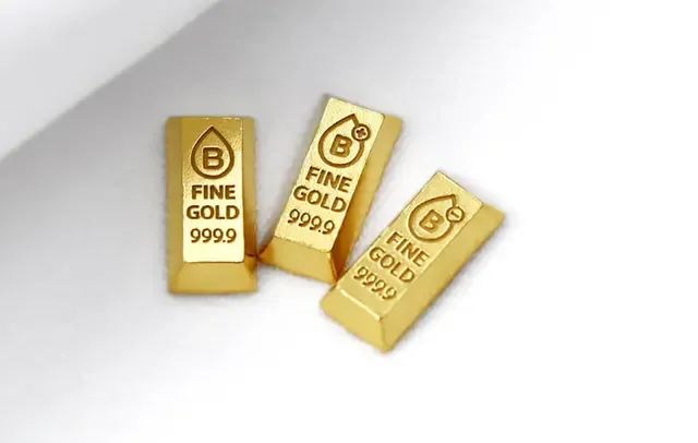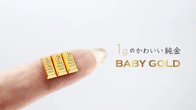 1gのかわいい純金BABYGOLD。人気の理由は、可愛いミニチュアのインゴット型の形状です。