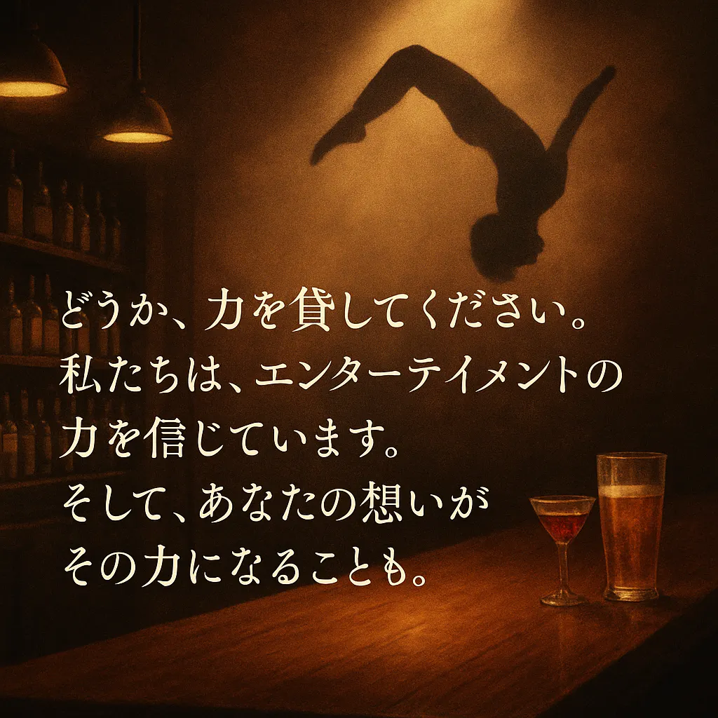 2025/07/14 18:58あなたの1時間が、きっと明日を変える。―JUMI10周年『夢酔夜』、ついに今週開幕。こんにちは。主催のあつしです。ついに、本番まで**“今週”**となりました。クラウドファンディングという形で、たくさんの方に支えていただき、このプロジェクト「夢酔夜(ゆめすいや)」は生まれました。そして今、僕らはその「想い」を形にする最終段階にいます。夢酔夜とは?60分、セリフとダンスが交錯する、完全オリジナルのエンターテインメントショー。構成・演出・脚本・音楽も自作です。振付はジャンルごとに信頼するクリエイターたちに依頼し、パフォーマーたちは慣れないジャンルにも本気で挑んでいます。これまでとはまったく違う、“言葉”で心を動かすJUMI。体だけじゃない、心をぶつける舞台になっています。 この作品、どこがすごいの?ダンス × セリフの融合役者たちの“苦手”を超える挑戦オリジナル曲 × それに魂を吹き込んだ振付一回性(※映像販売ナシ!会場限定!)「上手なこと」よりも、「心が動くこと」。ただのパフォーマンスではなく、“僕たちがやる意味”を全員で問いながら作っています。エンタメって何?と、本気で考えた!僕たちが信じているのは、「エンターテイメントは、明日へ進む“気持ち”を生む力だ」ということ。笑ったり、泣いたり、心が揺れたりしたそのあと、「明日、もうちょっと頑張ろうかな」と思える。それがエンタメの魔法です。そしてその魔法の源は、“自己満足”でいいと思っています。自己満足の極みで、誰かの笑顔が生まれるなら、それはもう立派な愛だし、社会貢献です。まだ間に合う!ご予約はこちらから!【日時】2025年7月19日(土)・20日(日)《全4公演》【場所】アトリエファンファーレ東新宿【座席】まだ少し空きがあります!【予約】分からないことがあれば、主催・あつしまでメッセージください(このページでもOK)最後にクラウドファンディングで支援してくださった方、SNSで拡散してくださった方、そしてずっと応援してくださっている皆さん。この作品は、あなたと一緒につくる“物語”です。目の前の1人の心に届けば、それでいい。それがずっとJUMIの信条です。だから、ぜひ会場で――僕たちの汗と笑顔と、魂のパフォーマンスを見届けてください。 もっと見る