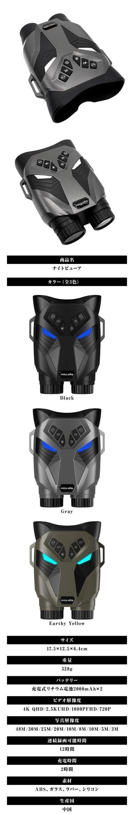 (*)ナイトビューワーにつきましては、Black, Grey, Earthy Yellowの3色からお選びください。