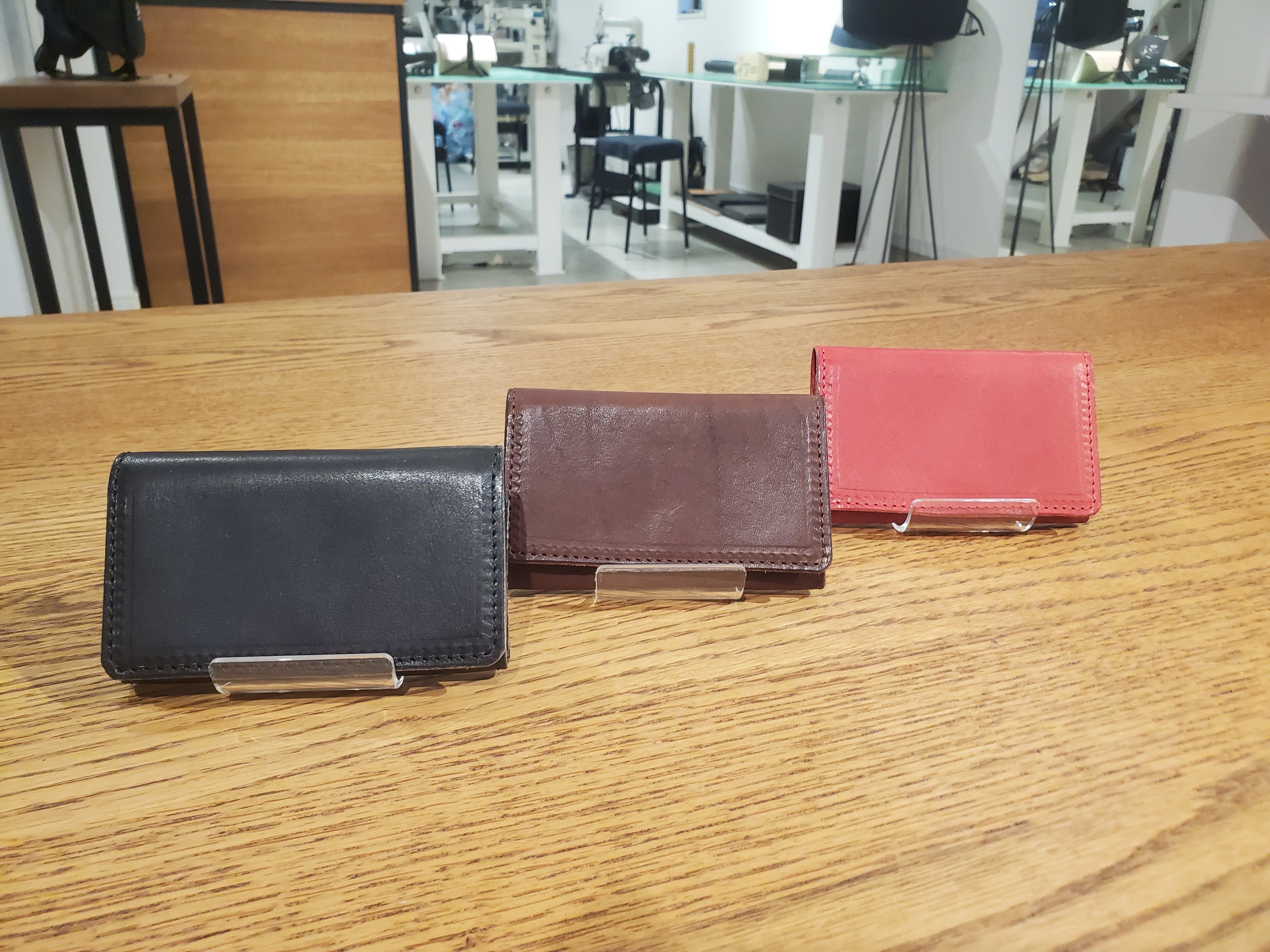 2. ヌメ革スムースレザーのしっとりとした触り心地。染料仕上げによって、革独自の自然な色味が際立ち、使い込むほどに深い経年変化を楽しめます。コバは丁寧に面取り・磨き加工を施し、高級感をプラス。カラー:ブラック、チョコ、レッド。