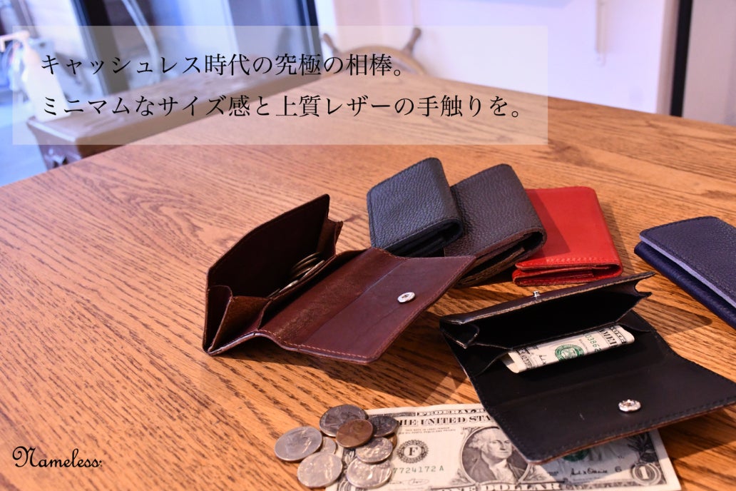 キャッシュレス時代を見据え、必要最低限の収納を美しく、そして機能的に仕上げた「Nameless★」のミニマム財布。ポケットにすっぽり収まり、胸ポケットにも収められるスリムなデザインは、ミニマリストやコンパクトな生活を求める人々に最適です。