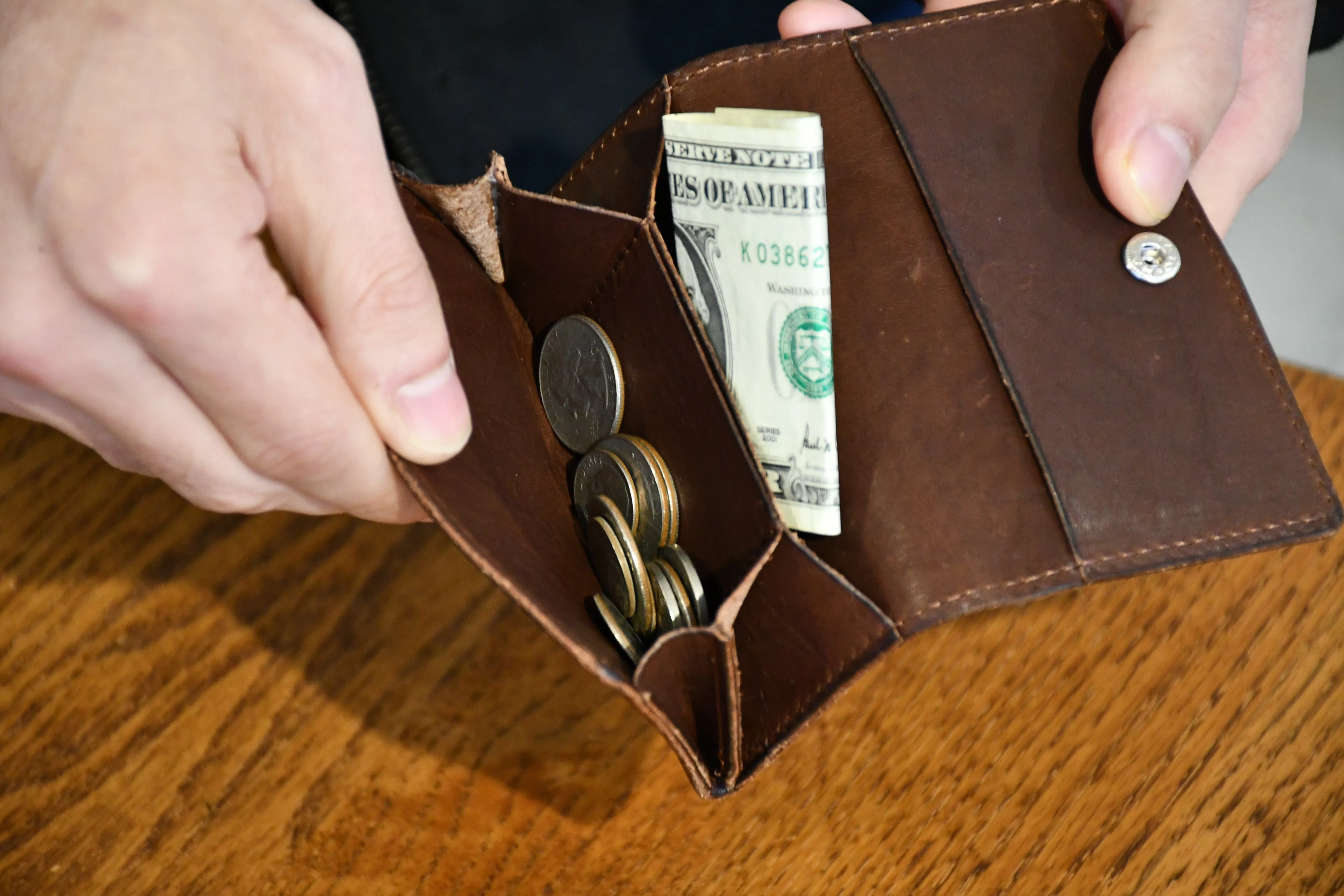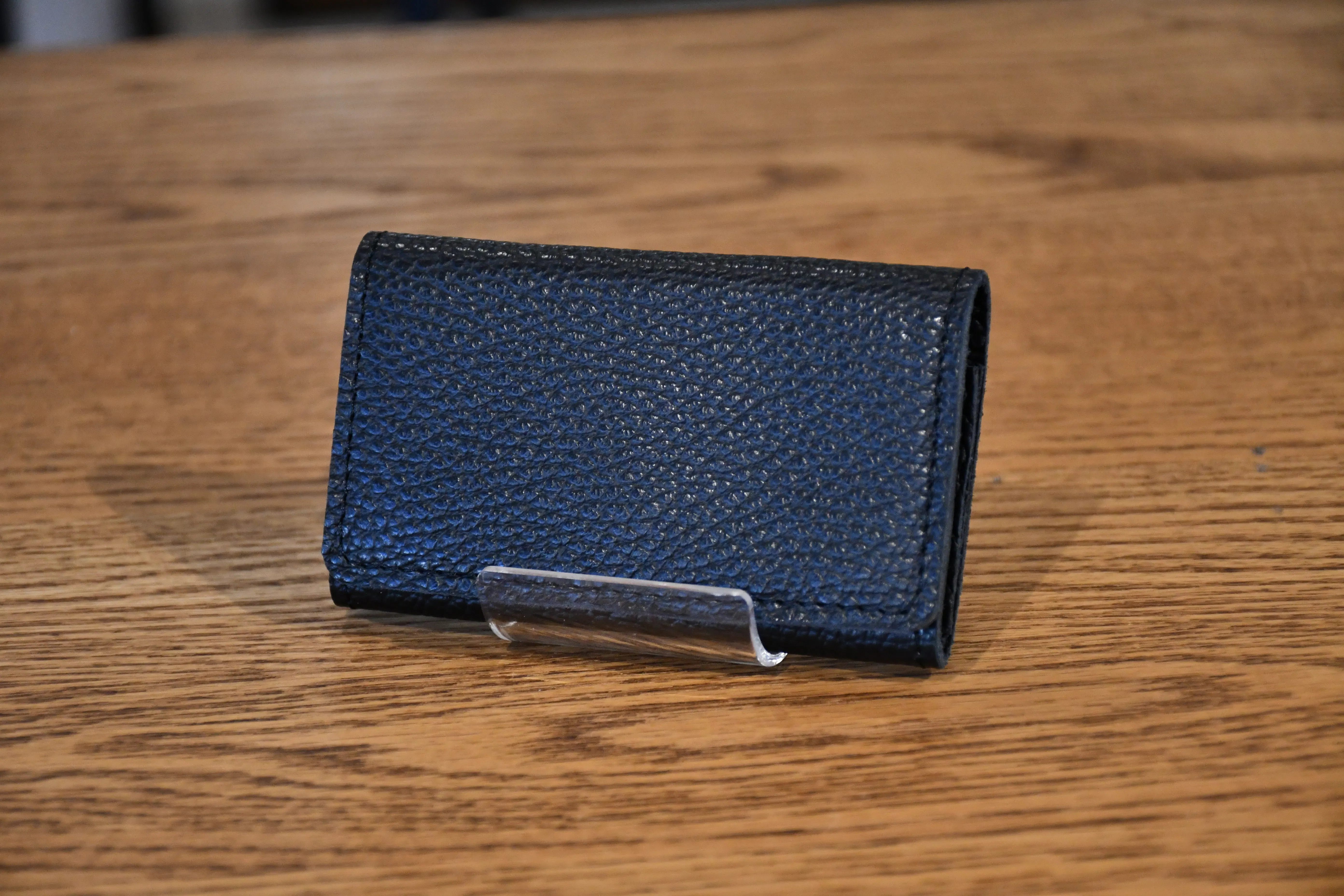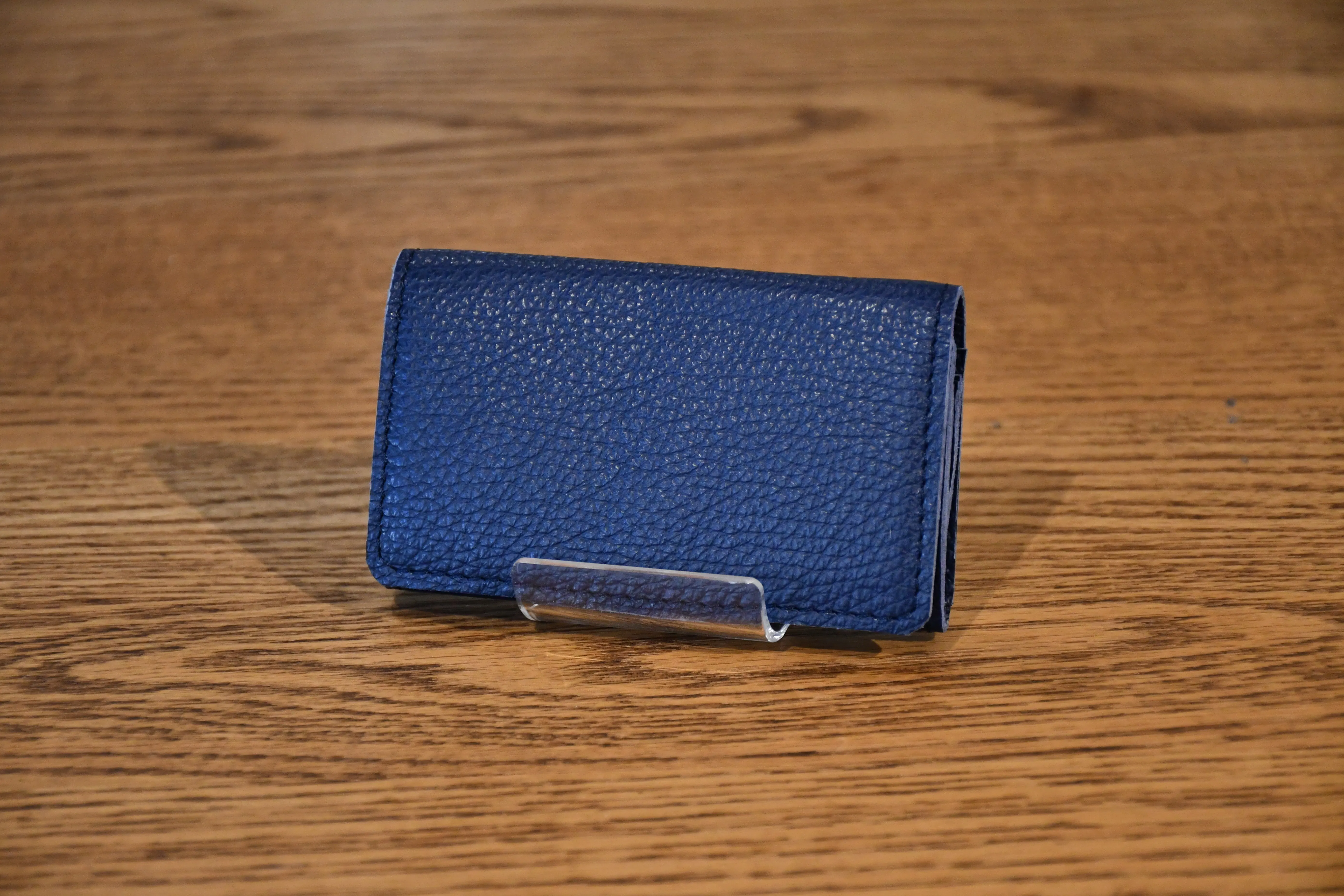革の厚みはわずか1.1mm。縁の部分には先端0.5mmまで薄くする斜め漉き加工を施し、スマートな仕上がりを実現しています。隠しボタン仕様で、外観を損なわず手触りも快適。小銭入れはマチ付き構造で、視認性と取り出しやすさを両立。ファスナーを使わず、かぶせ仕様で落下を防ぎながら必要な時にすぐ取り出せます。カード入れは蛇腹構造を採用。コンパクトなサイズ感ながら、カードを2~3枚スムーズに出し入れ可能です。収納は3箇所で、小銭18枚〜30枚、カードや名刺、お札もコンパクトに収納可能。ステッチは同色で目立たず、ビジネスシーンでも活躍。機能と美しさの融合厚みは約2cmで、スマートな外観を保ちながら必要十分な収納力を実現。ハンドメイドならではの丁寧な仕上げと、「Nameless★」のレーザー刻印が高級感をさらに引き立てます。