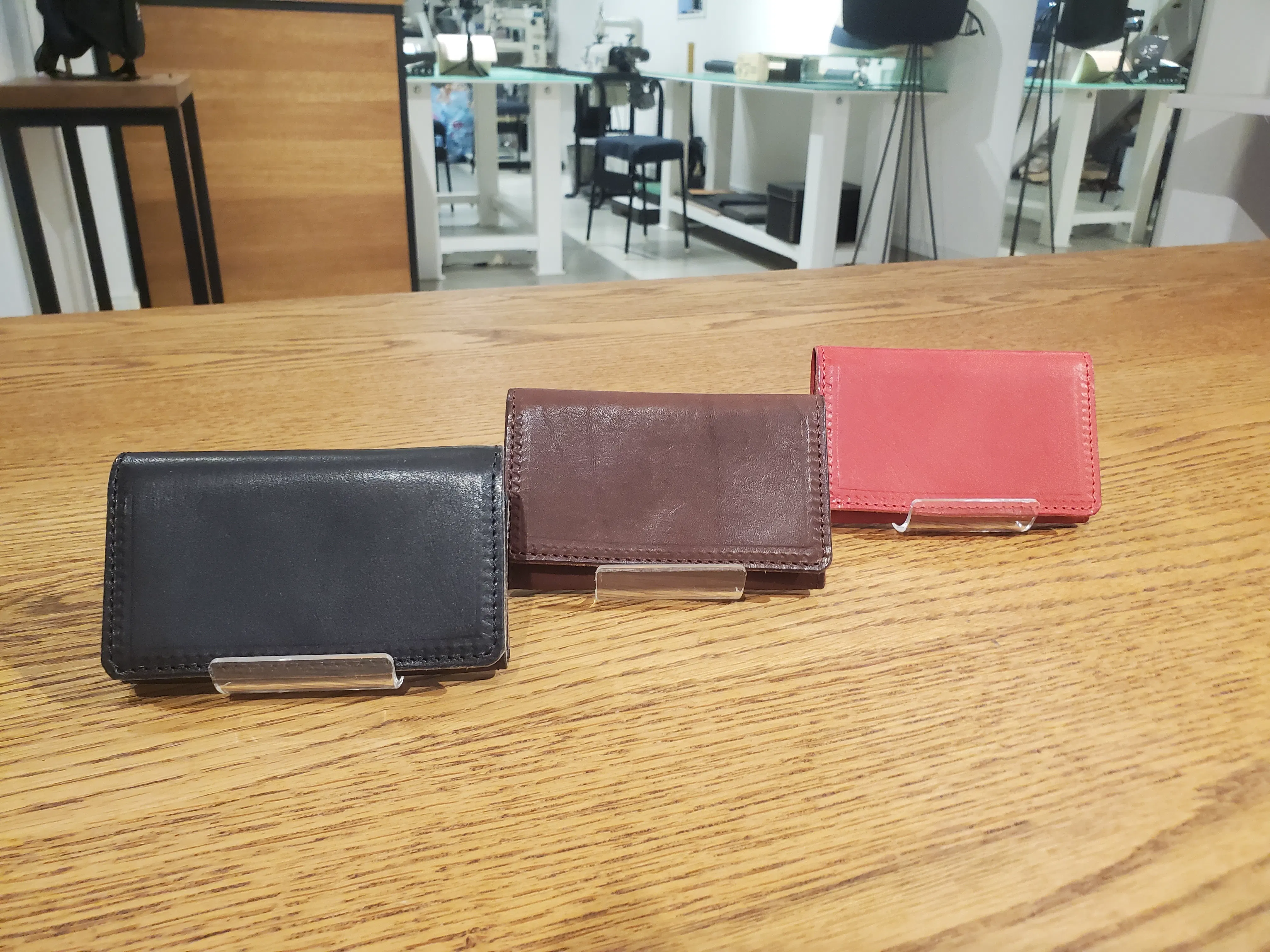 1. イタリアンレザーシボの型押しが特徴で、ふわっと柔らかな触り心地。鮮やかな発色と、切りっぱなしのコバがカジュアルさと洗練さを両立。日常使いでも可能。カラー:ブラック、ダークブラウン、ネイビー。