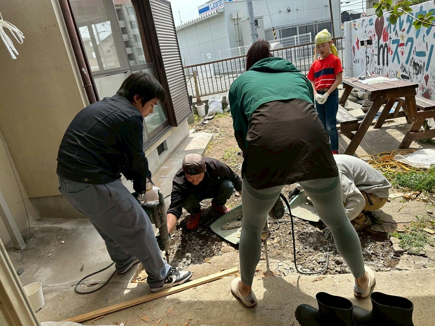 大人も子どもも、人生で初めてコンクリートを解体する作業を行いました。