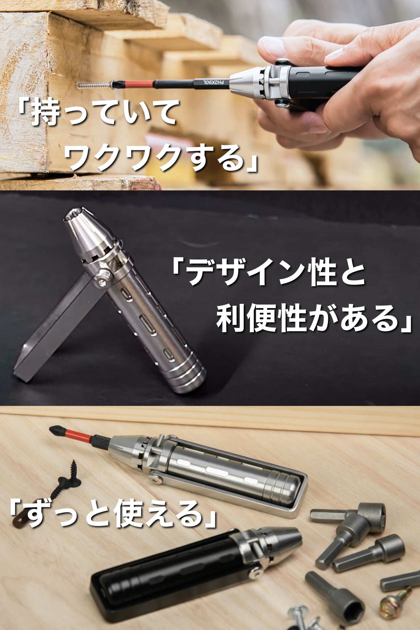 ねじの頭にドライバーを当てたまま、ハンドルを左右に振るだけで作業ができるため、疲れず効率的です。